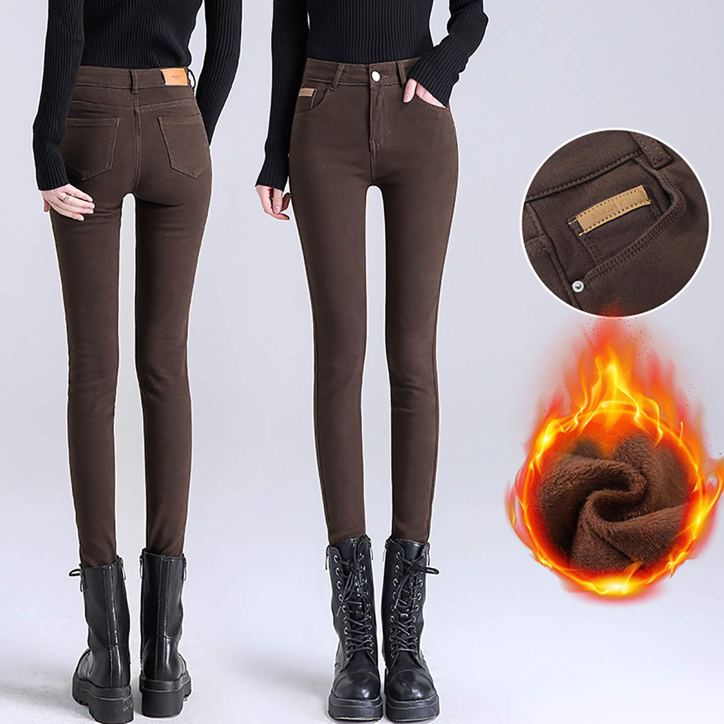 首页> 女装> 咖啡色2025秋冬加绒牛仔裤女高腰高个子显瘦小脚裤修身加长铅笔裤