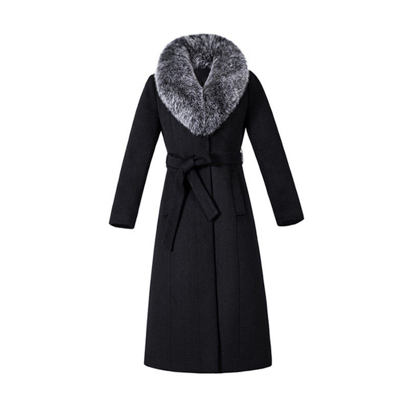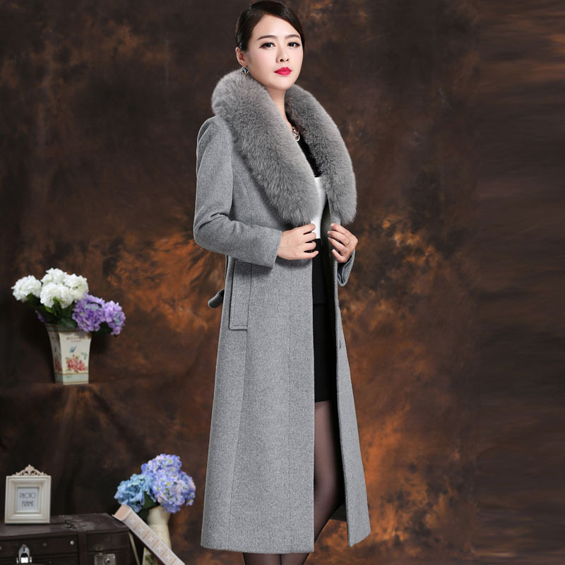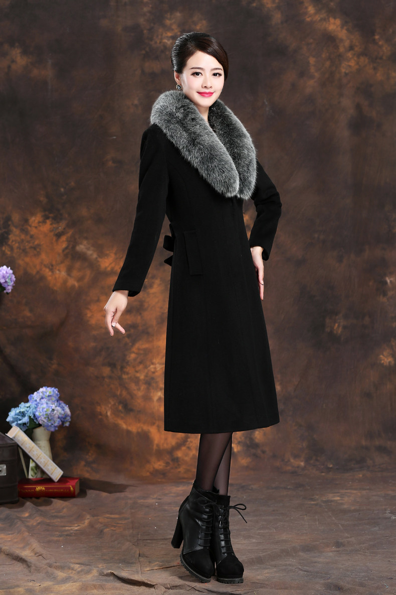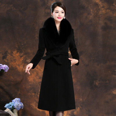 秋冬中长款狐狸毛领羊绒大衣女中年妈妈韩版修身显瘦毛呢保暖外套