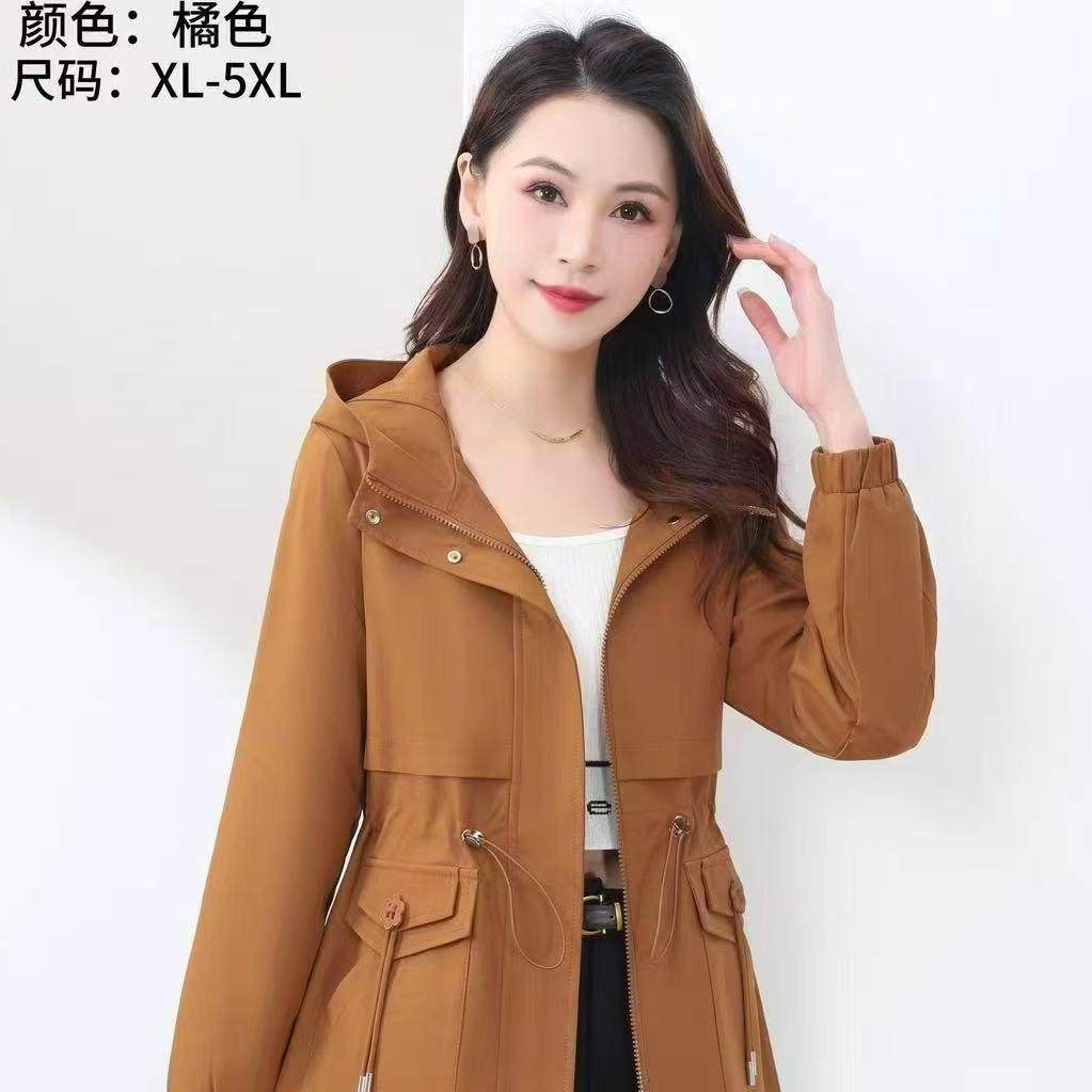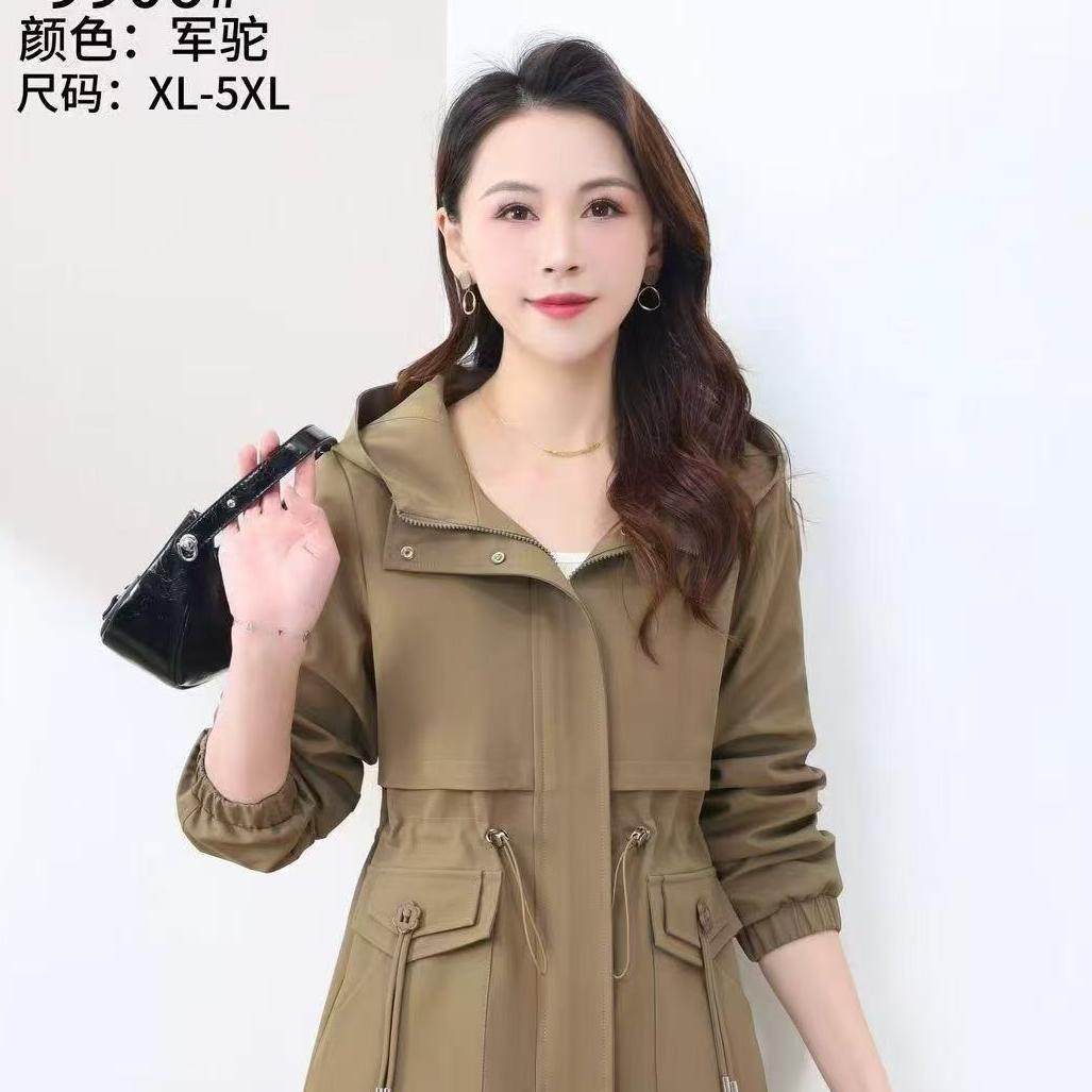 收腰显瘦中长款风衣女2025春秋新款大码宽松高级感休闲连帽外套女