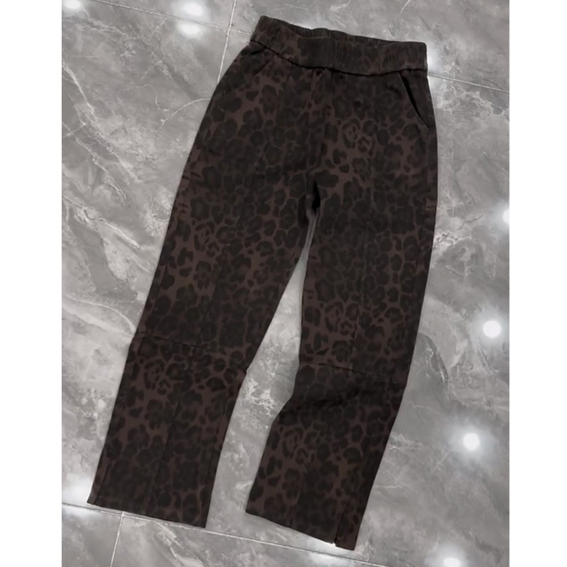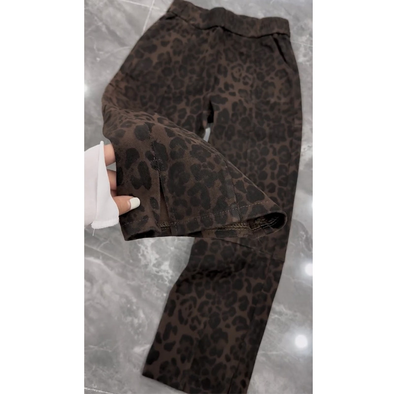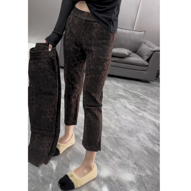 时尚欧货洋气豹纹牛仔裤女松紧腰宽松显瘦侧开叉直筒九分烟管裤潮