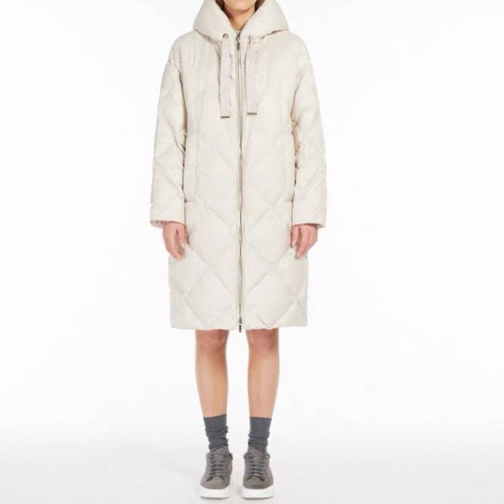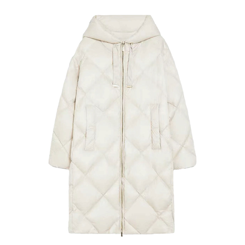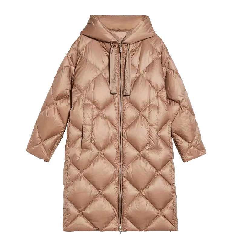 秋冬新款菱格纹羽绒服中长款连帽拉链加厚外套女士夹克