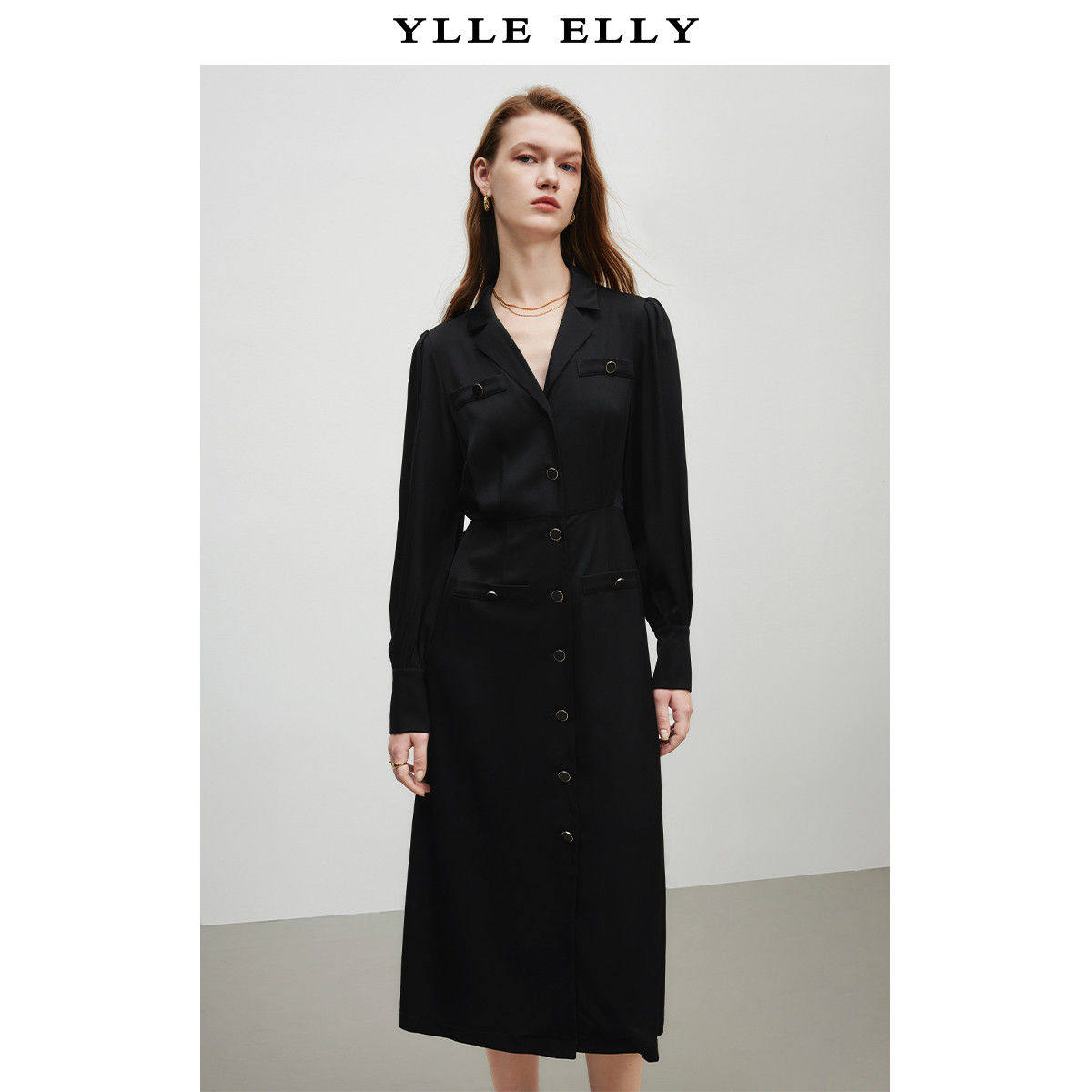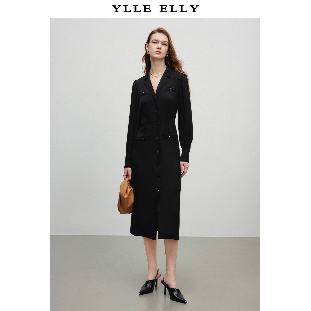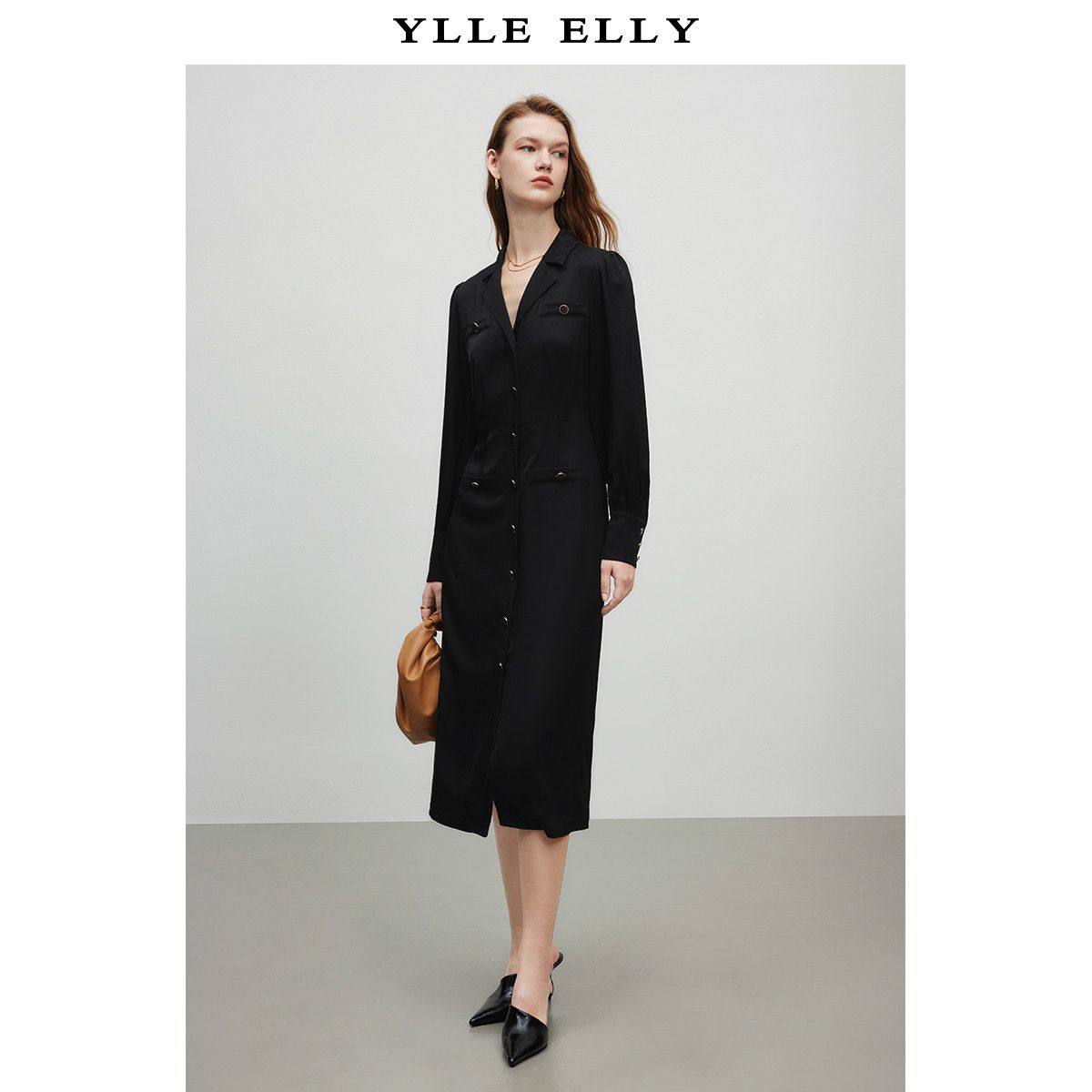 【廖廖粉丝专属】【曼德诗】极简气质连衣裙设计感灯笼袖别致翻领