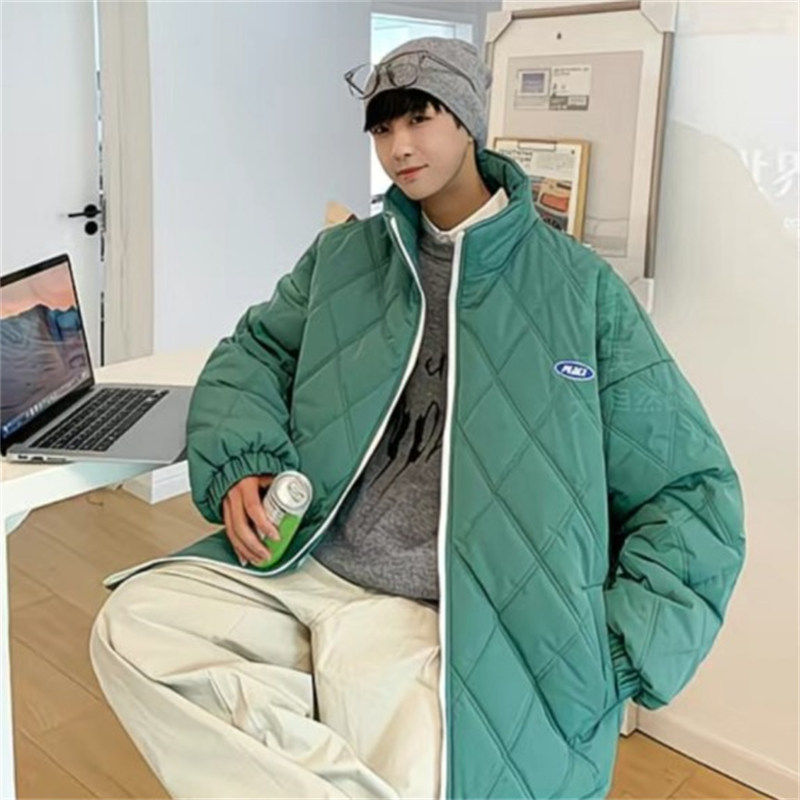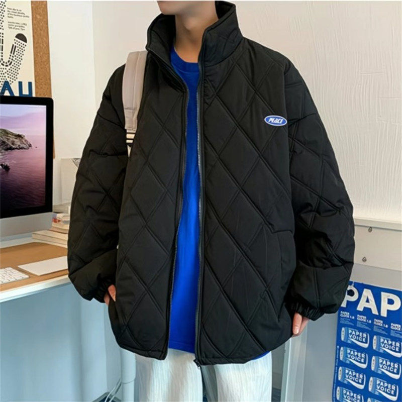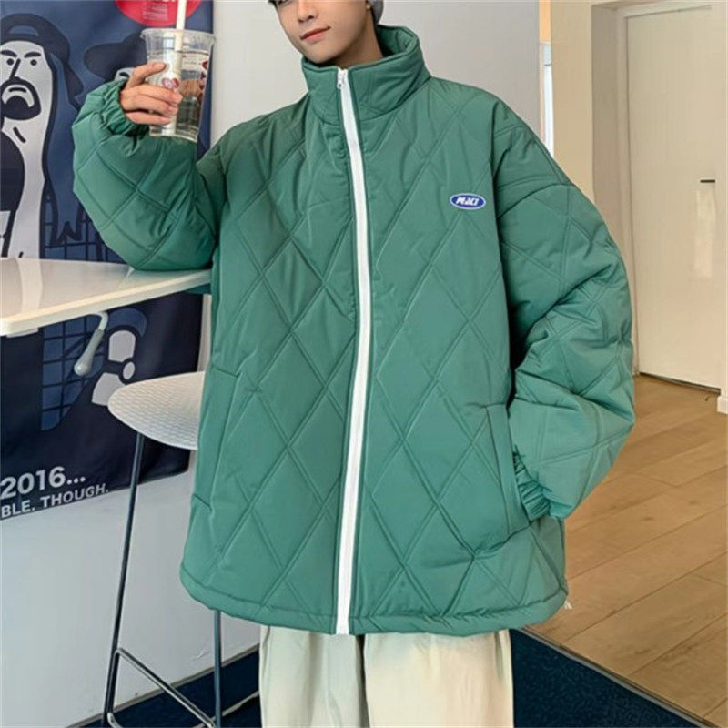 M808秋冬季菱形立领薄款棉服港风情侣潮牌棉衣复古风休闲棉袄外套
