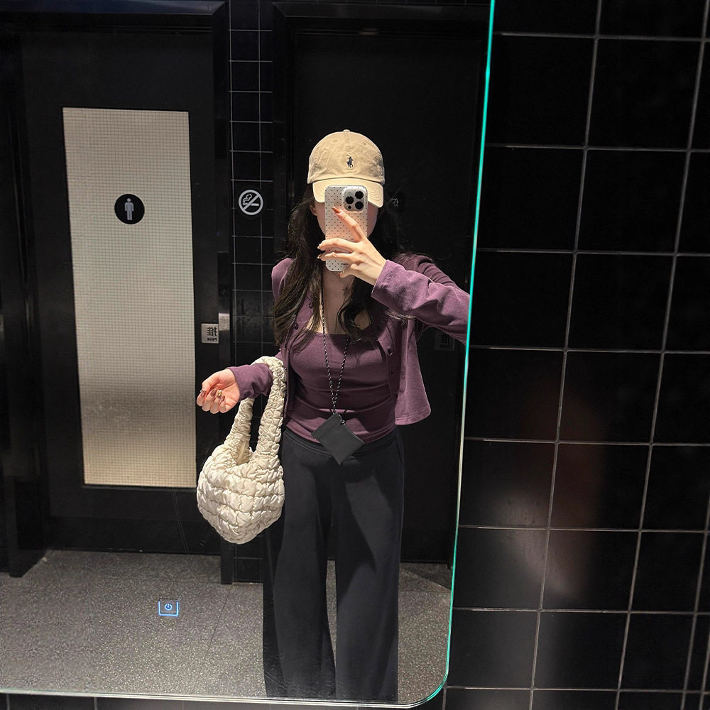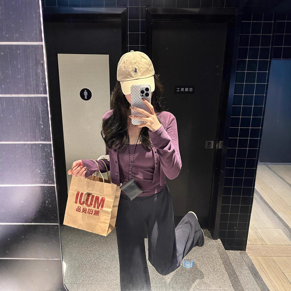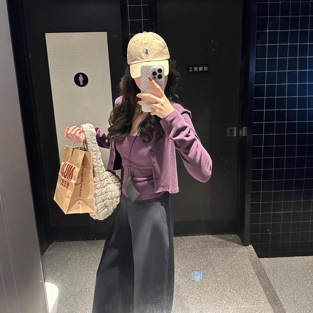 韩系辣妹紫色短款吊带背心针织开衫女2025秋季小个子两件套装上衣