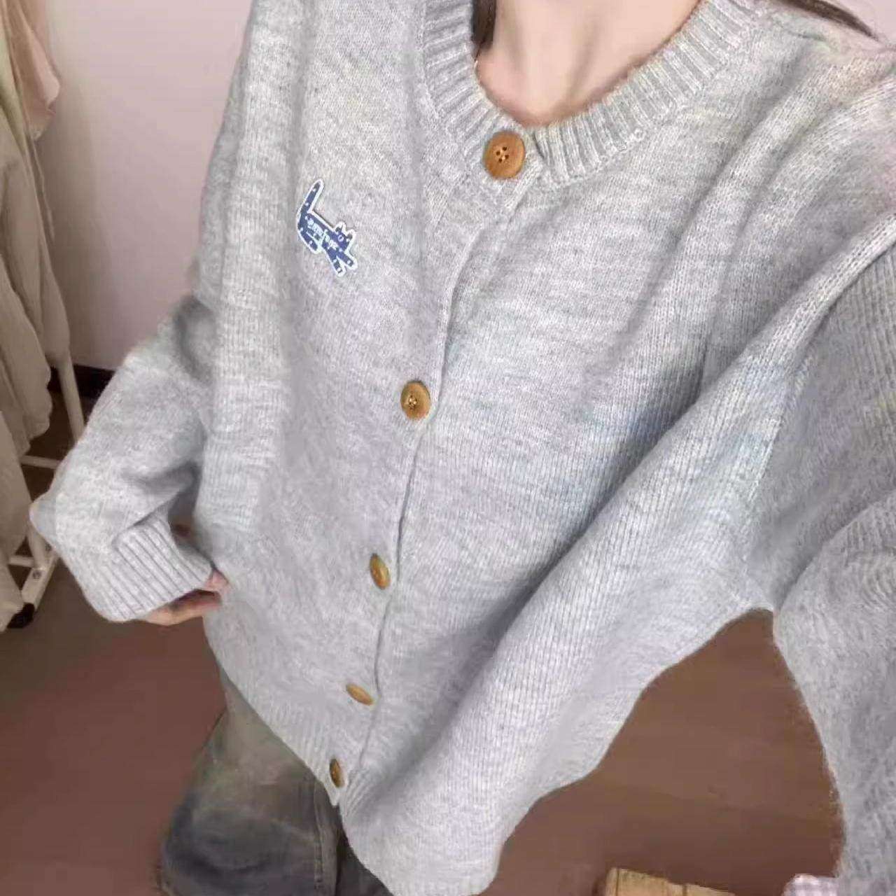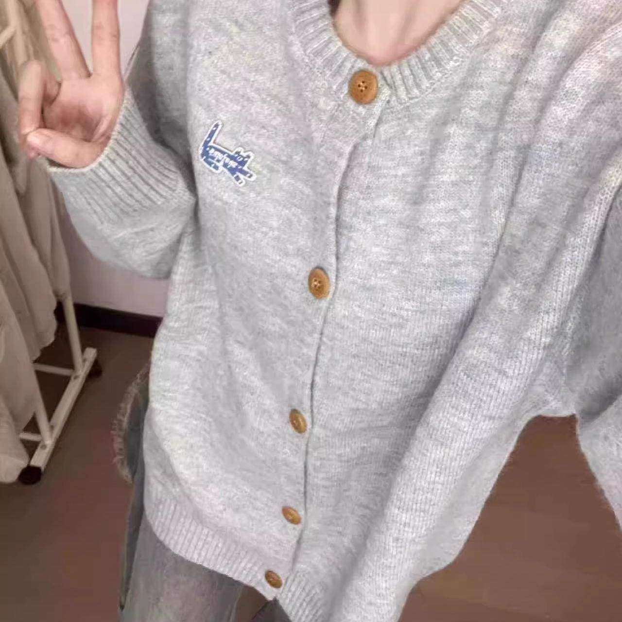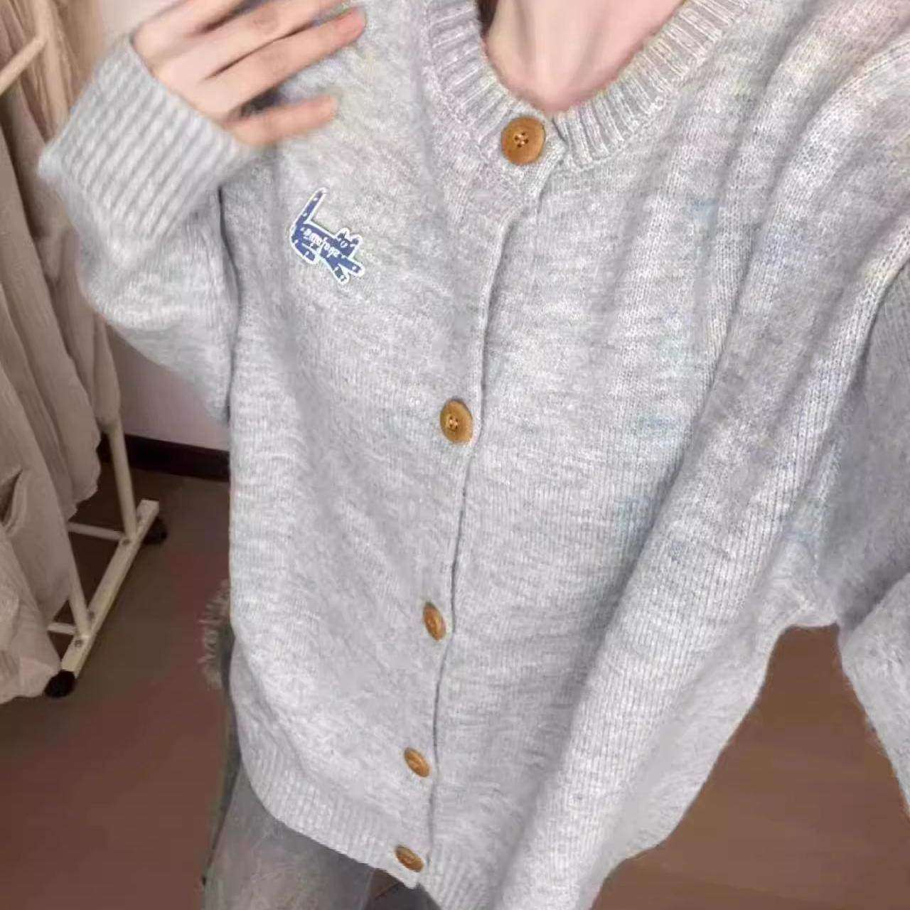 日系甜美毛衣开衫外套女春季2025新款超好看宽松慵懒风针织衫上衣