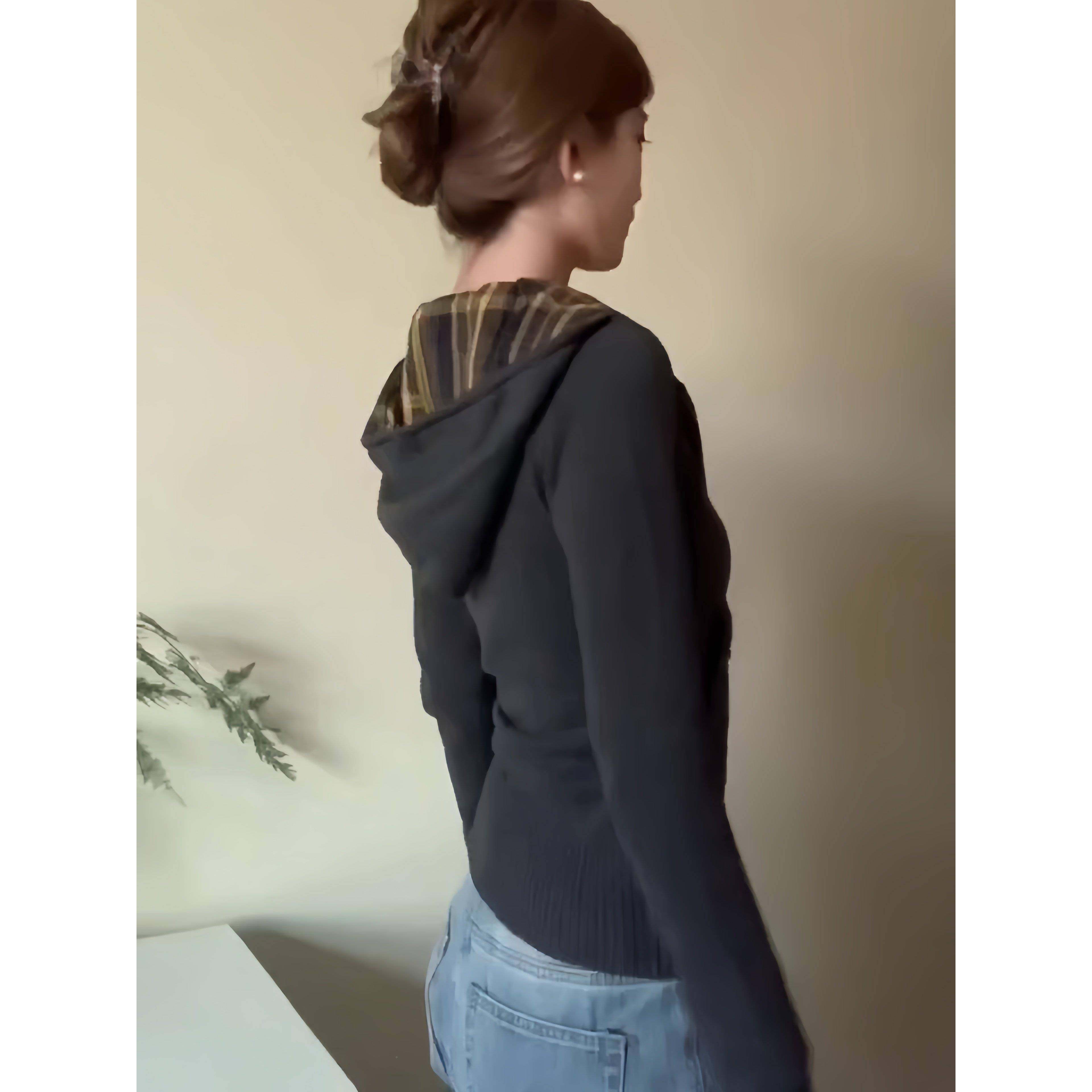 美式复古织格修子连帽毛衣外套女秋冬季身收腰短J0409E 款针辣开
