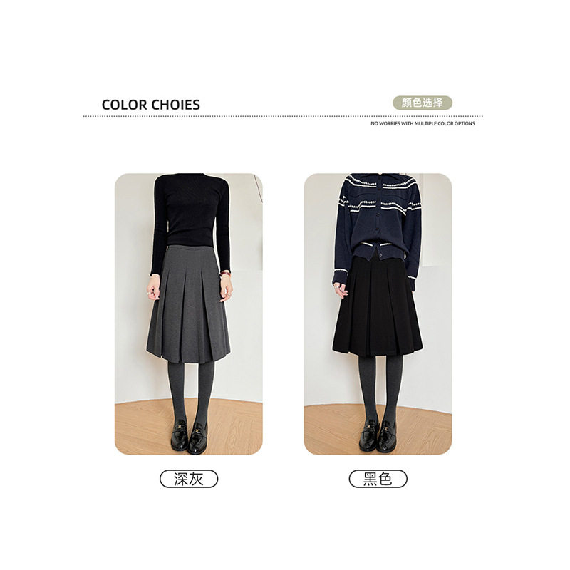 首页> 女装> 细斜纹毛呢百褶裙女春季新款高腰显瘦a字中裙小个子学院风半身裙