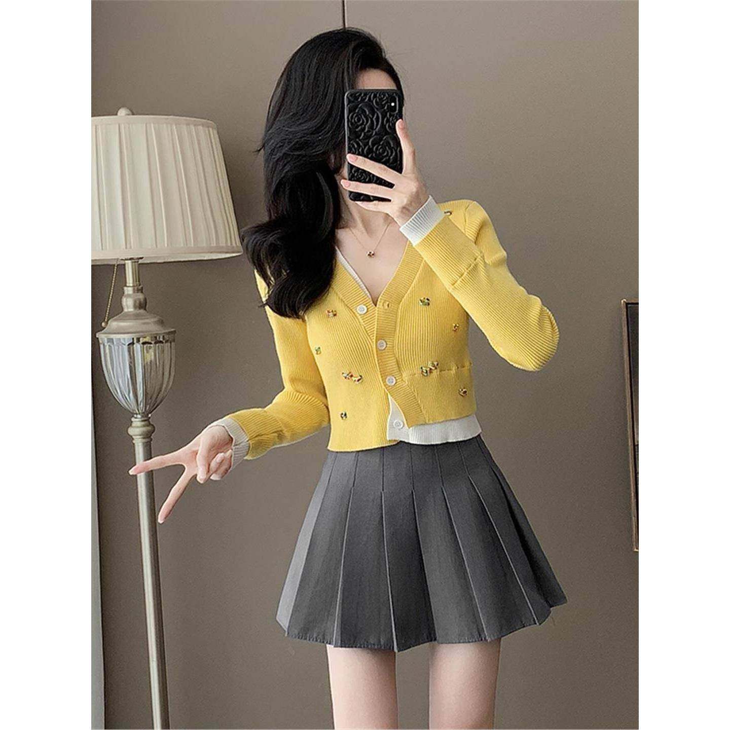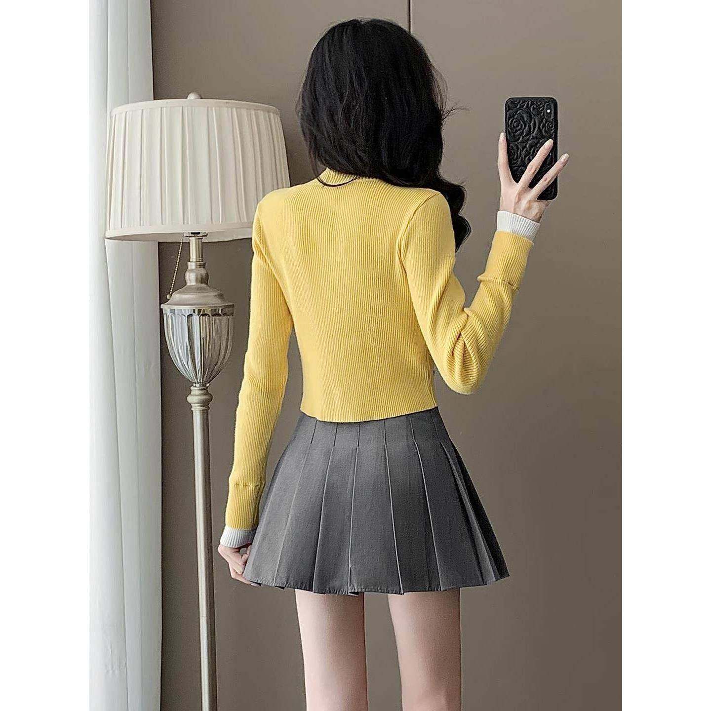 首页> 女装> Ocnltiy撞色V领假两件针织衫女士秋季修身气质短版开襟外套设计感
