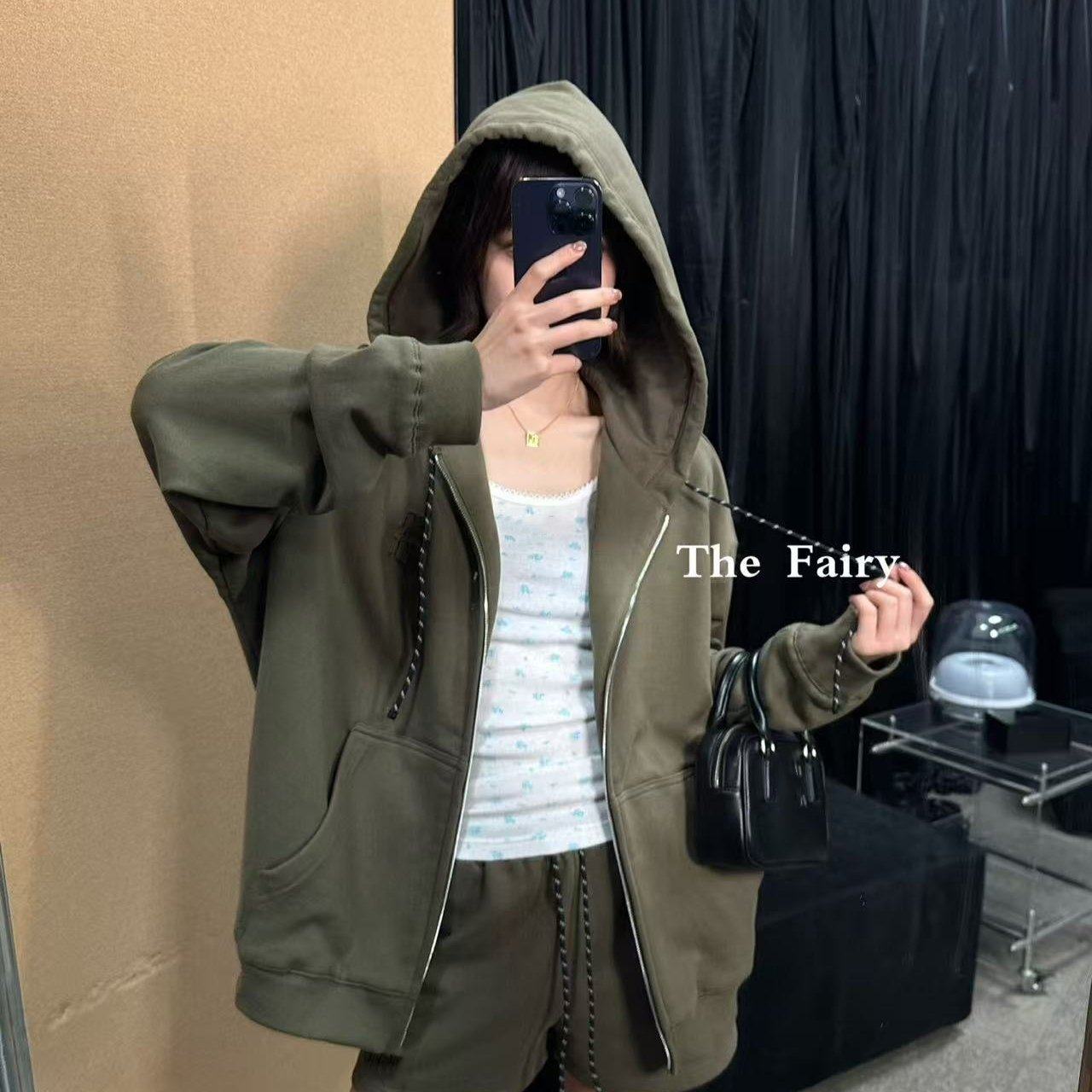 好漂亮橄榄绿连帽运动衫外套女2026年早春新款短上衣宽松休闲时尚