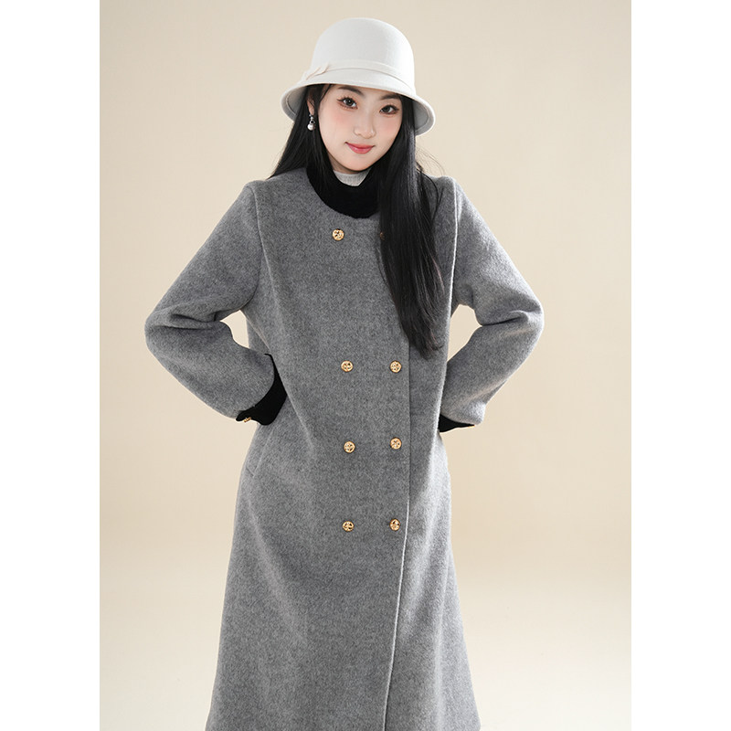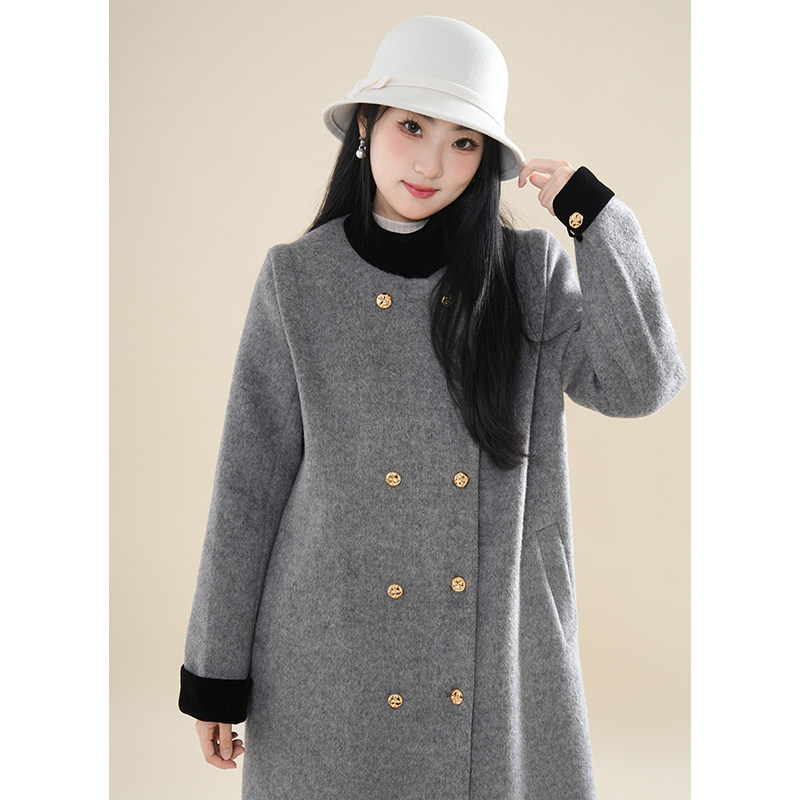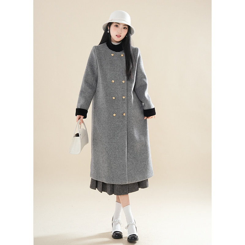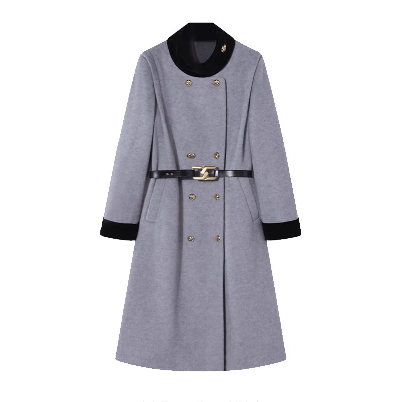 巴黎画报 气质时尚宽松中长款春秋新款立领双排扣呢子大衣女