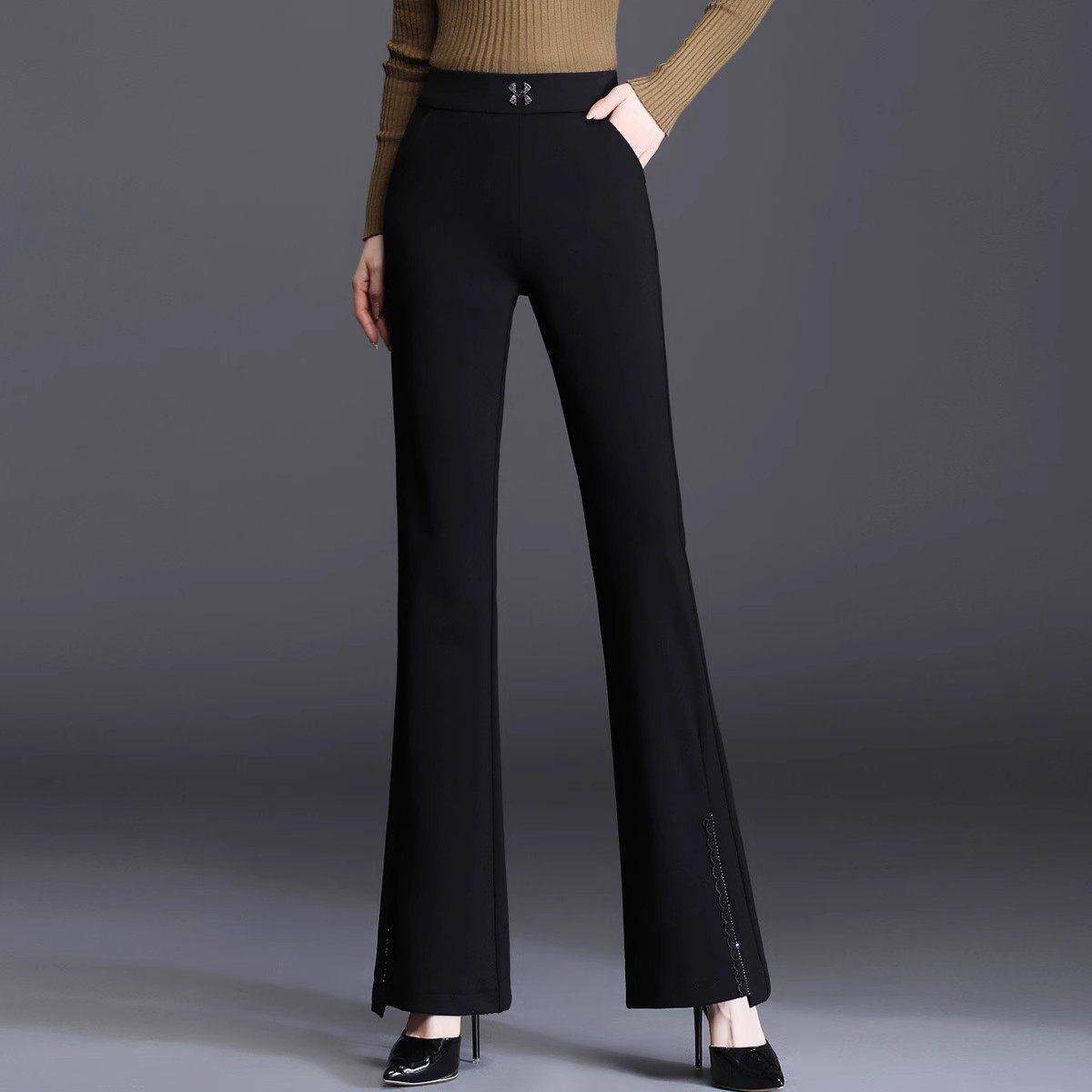 首页> 女装> 春秋黑色长裤女2025新款中年妈妈高腰微喇裤垂感显瘦松紧腰嗽叭裤