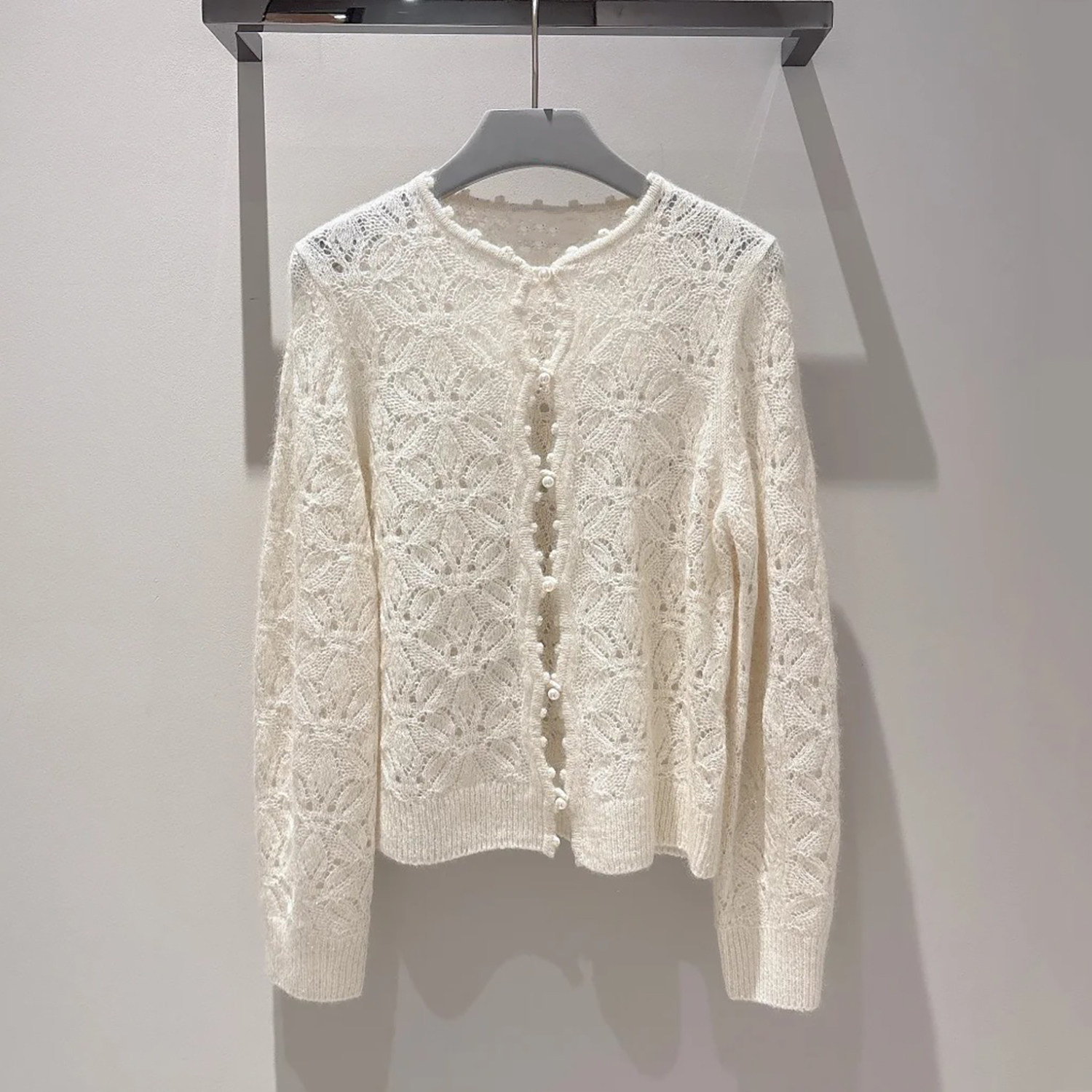深圳南油高端女装2026春季新款通勤风重工刺绣珍珠镂空针织开衫女