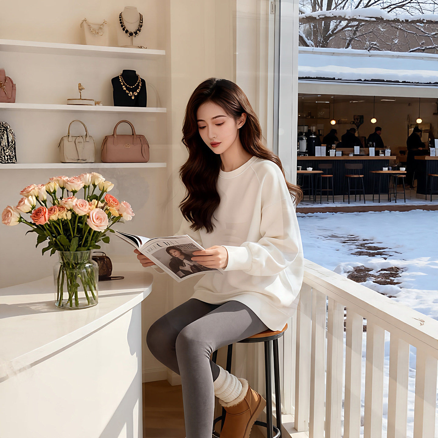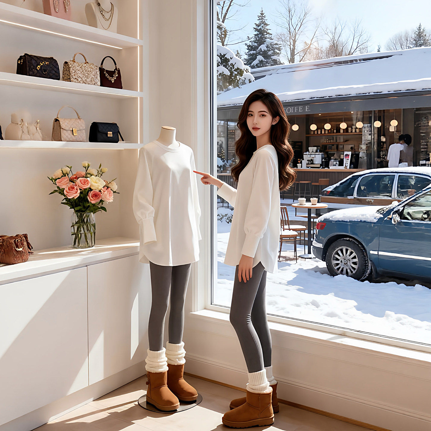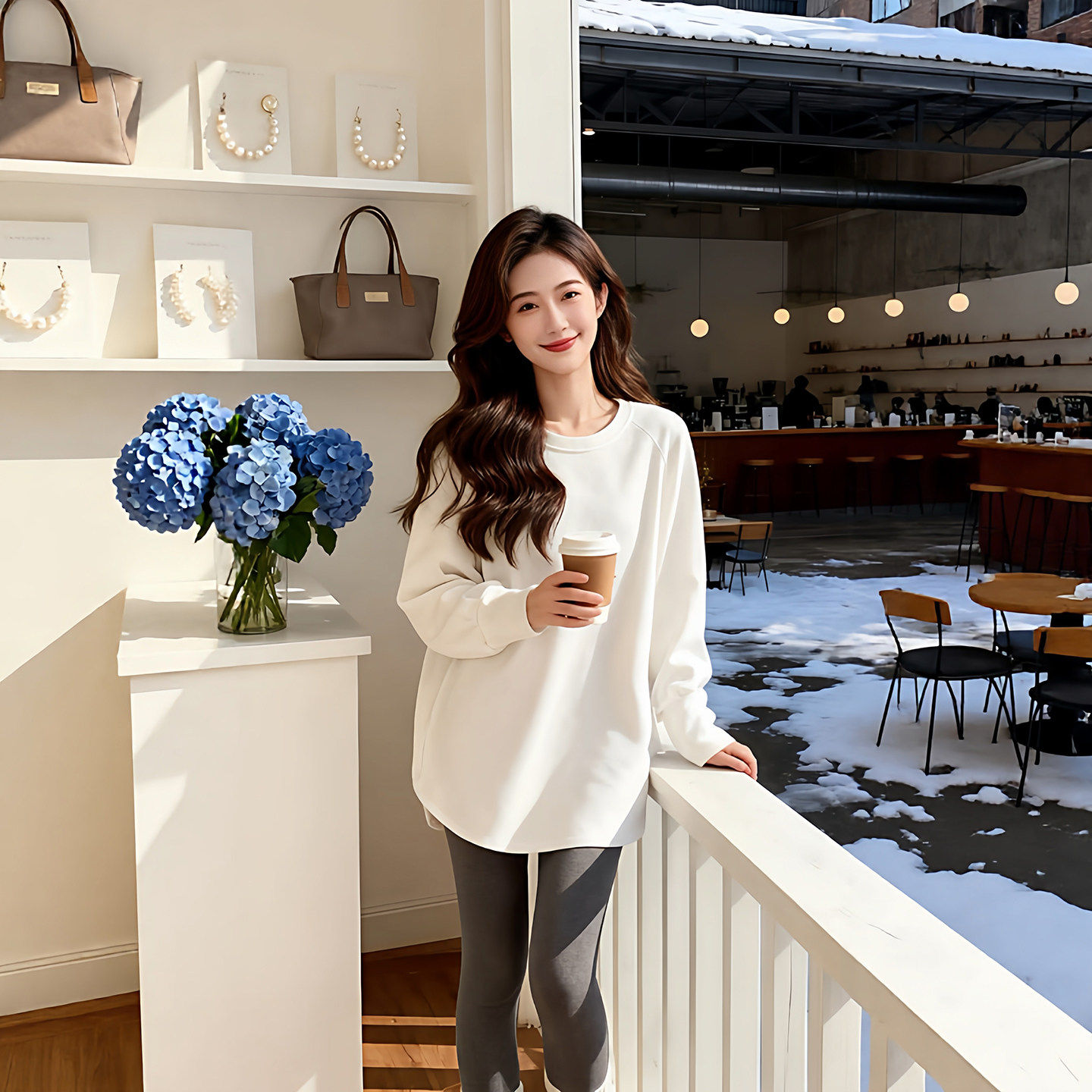 欧货加绒纯棉白色打底衫女内搭2025新款秋冬遮屁股长袖T恤上衣潮