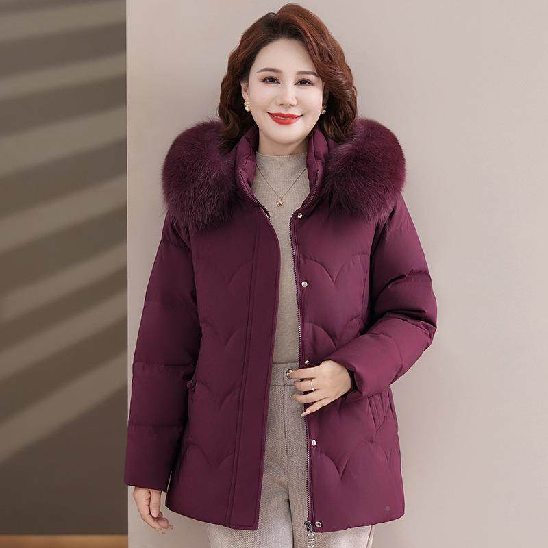 8863品牌妈妈羽绒女冬狐新款加狸厚保暧服真毛领白鸭绒连帽外套