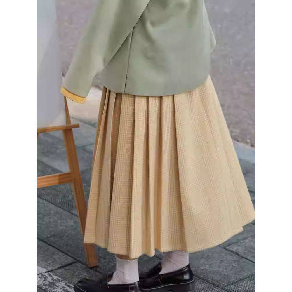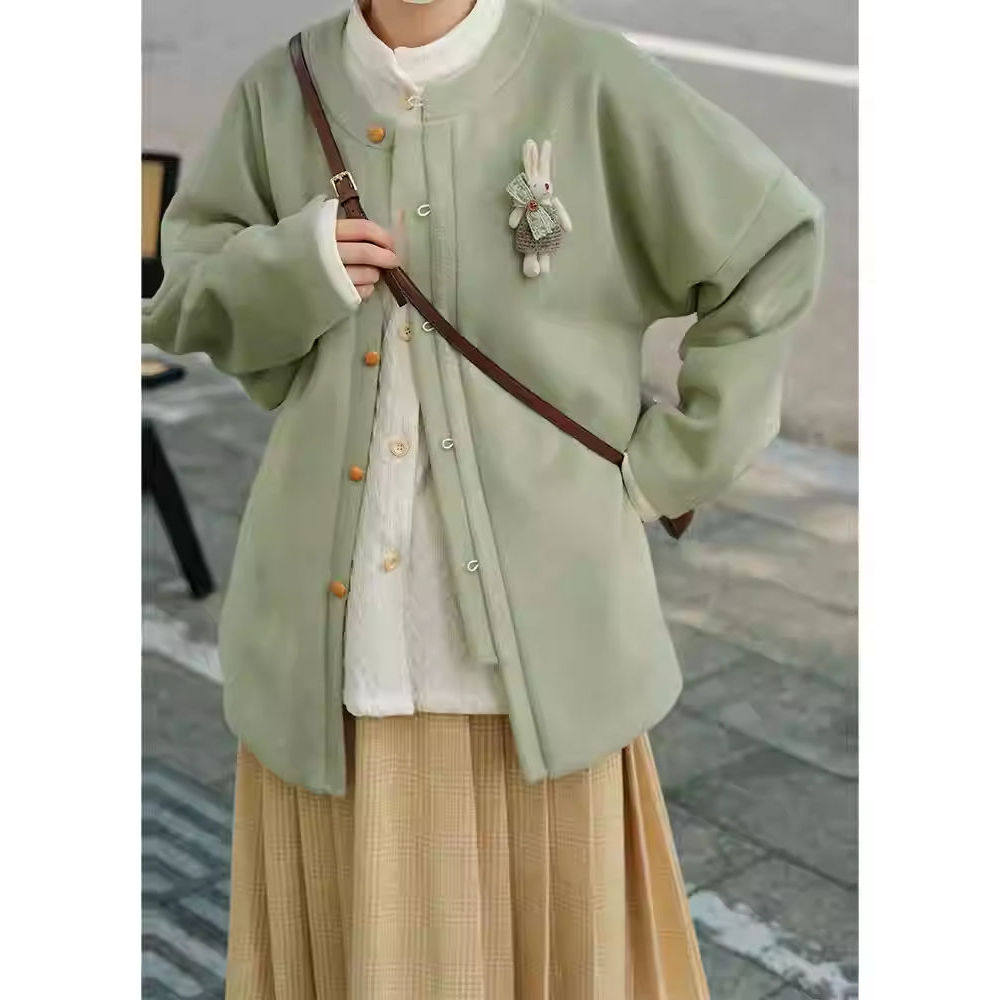 松山煮雨 立领圆领弓袋袖毛呢外套女/松紧马面裙秋冬季国风两件套