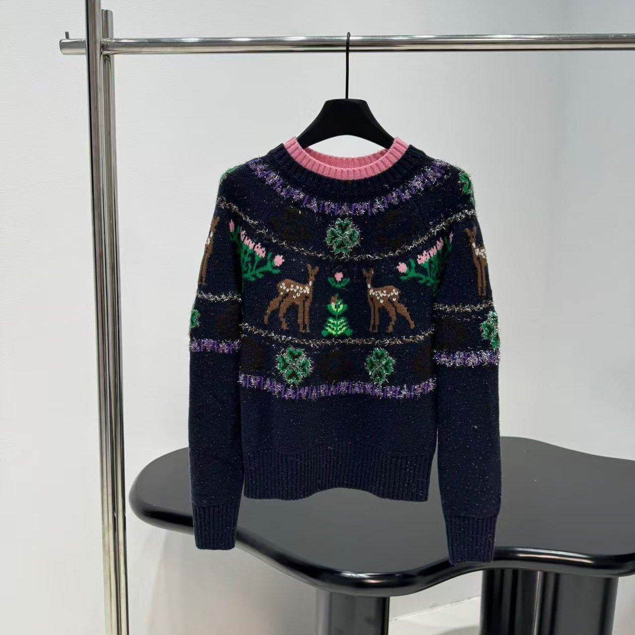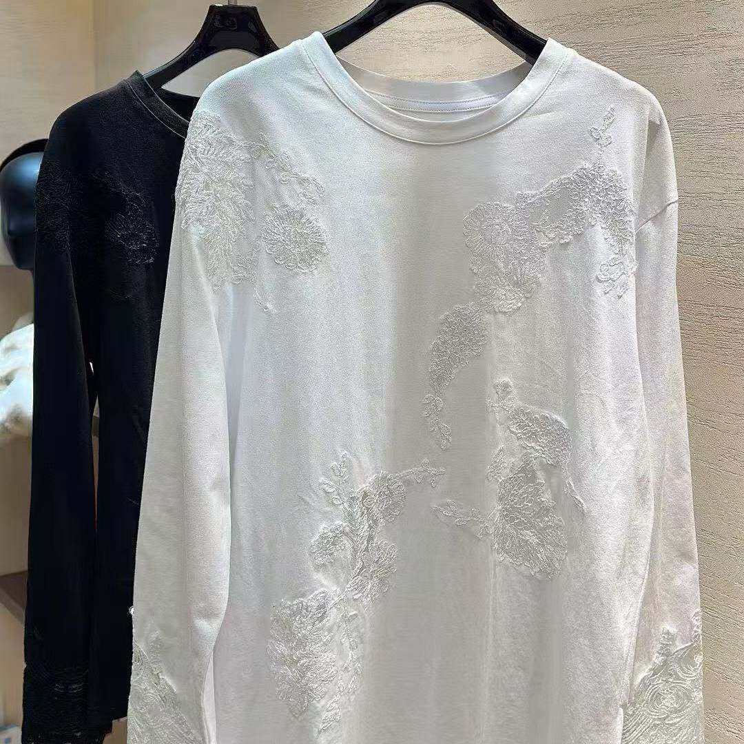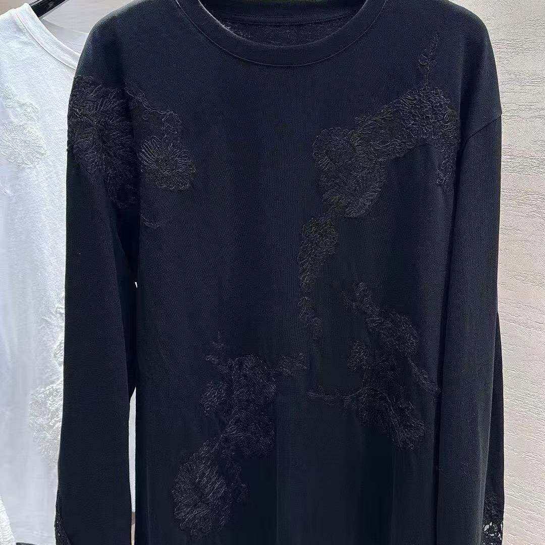 好漂亮温柔慵懒风重工刺绣花朵长袖圆领套头针织衫女宽松时尚热销