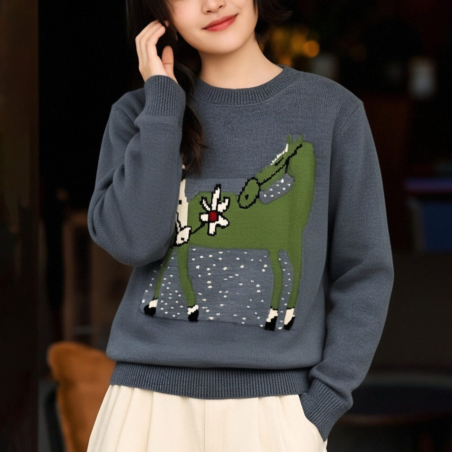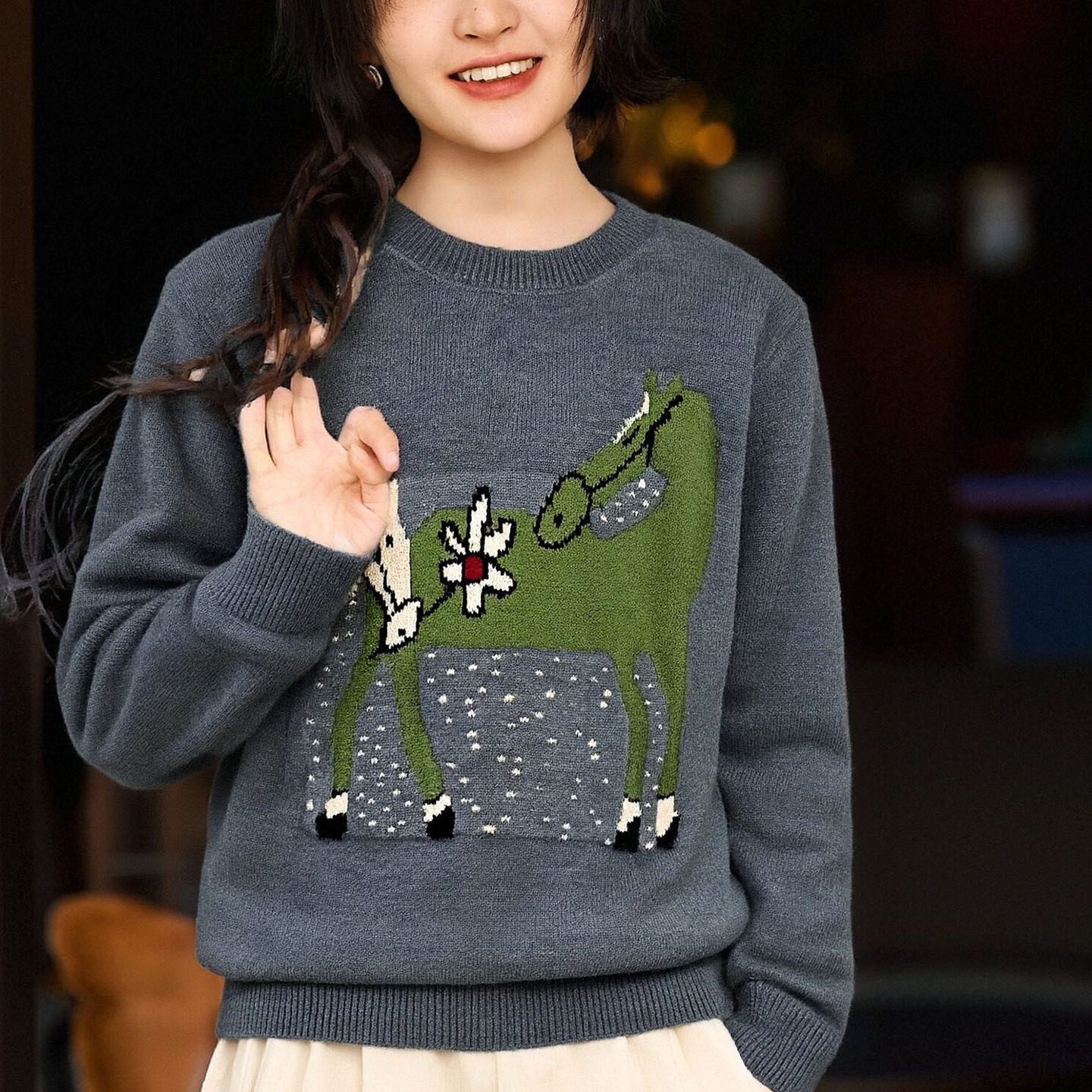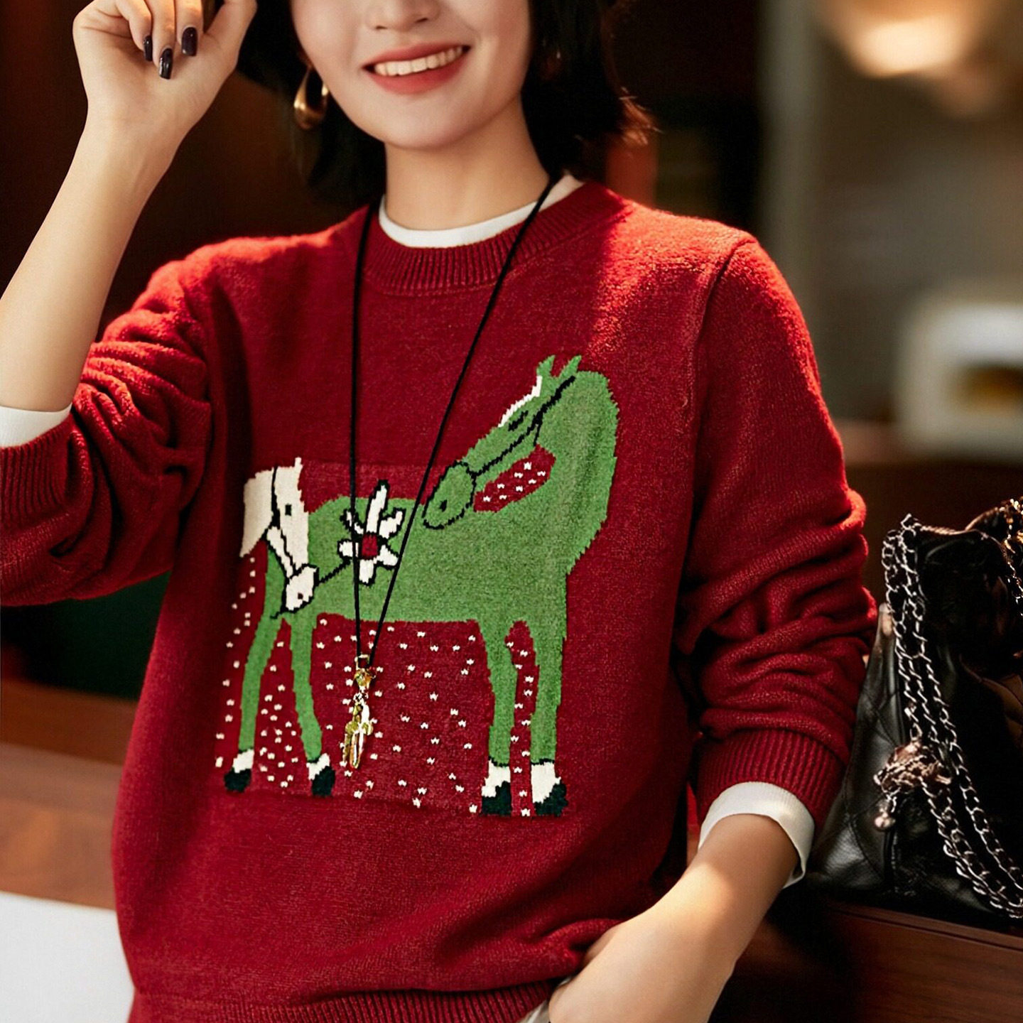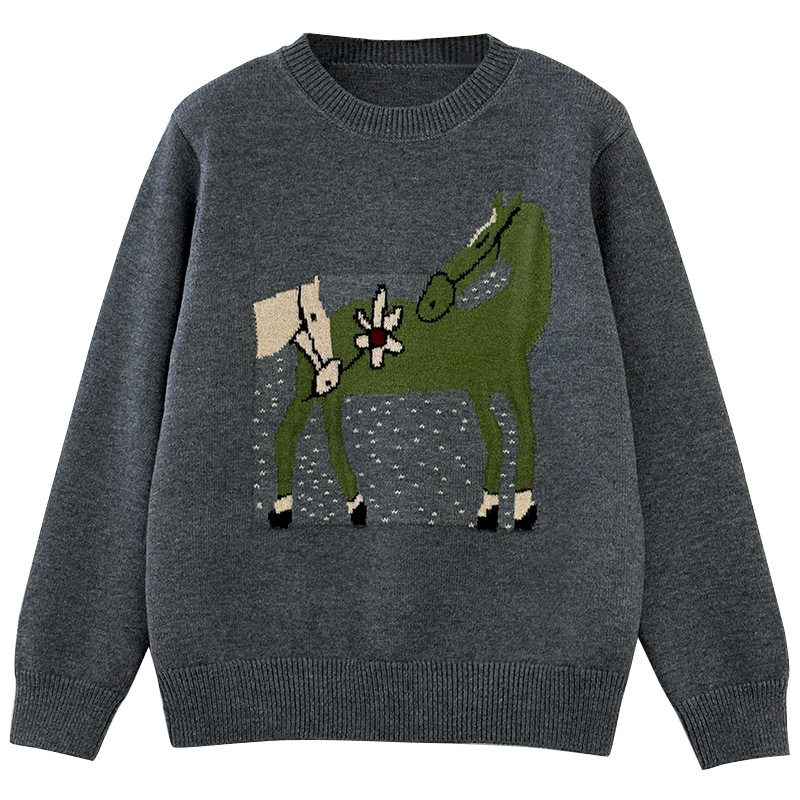 新年红马上有钱针织衫2026春装新款上衣圆领套头软糯保暖提花毛衣