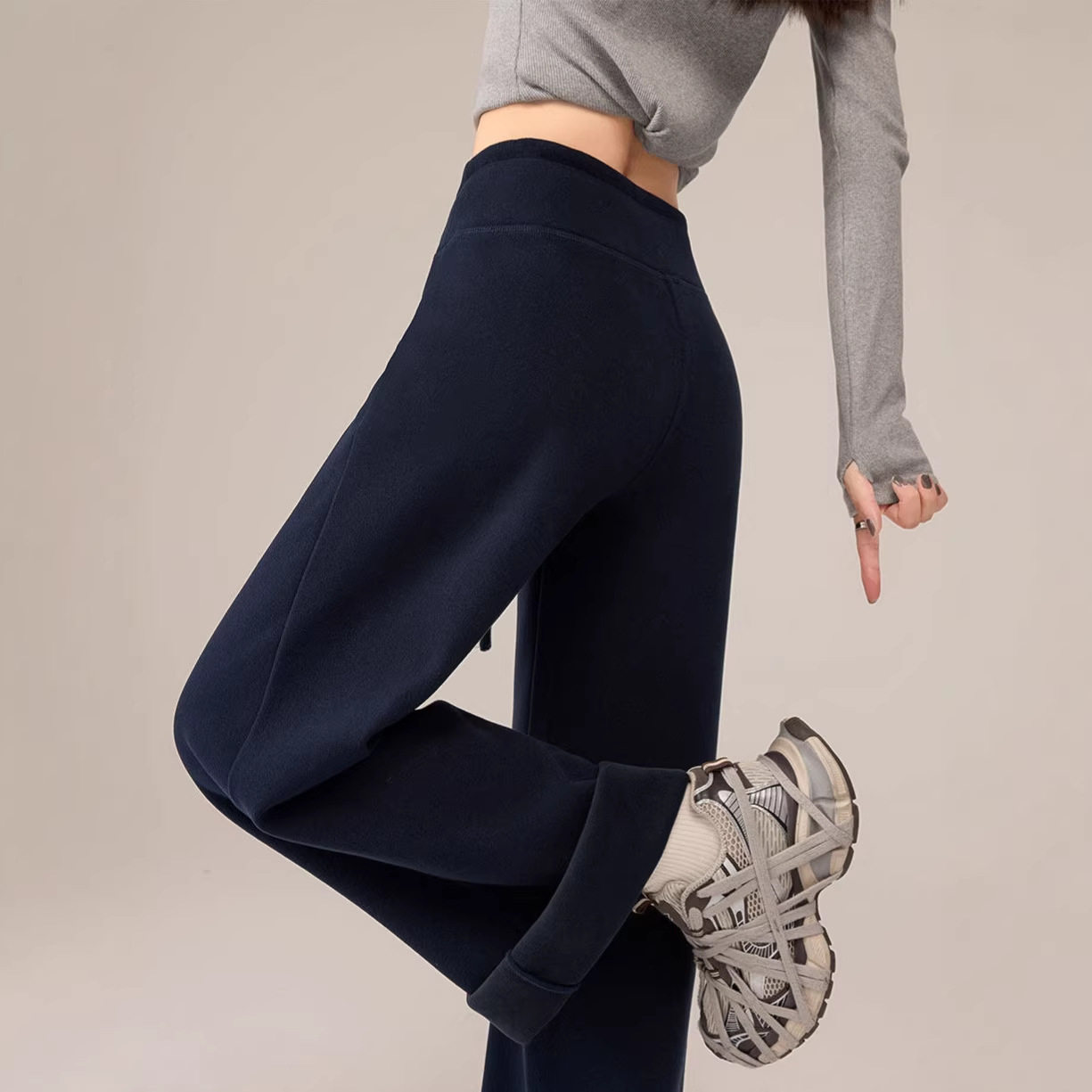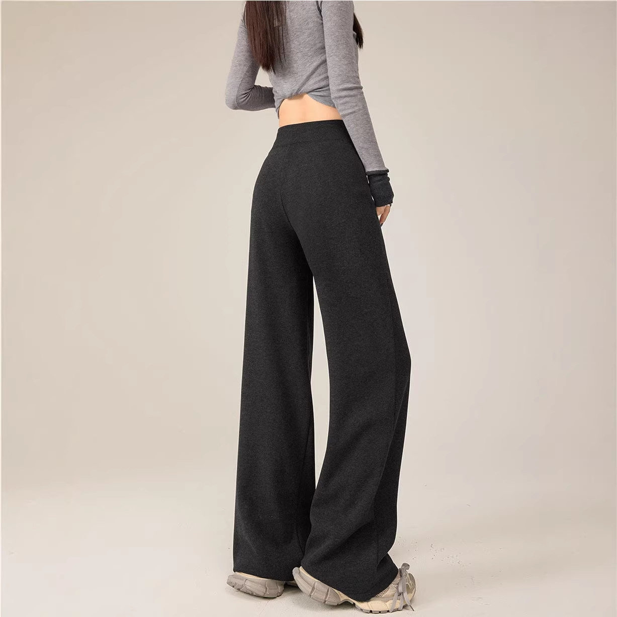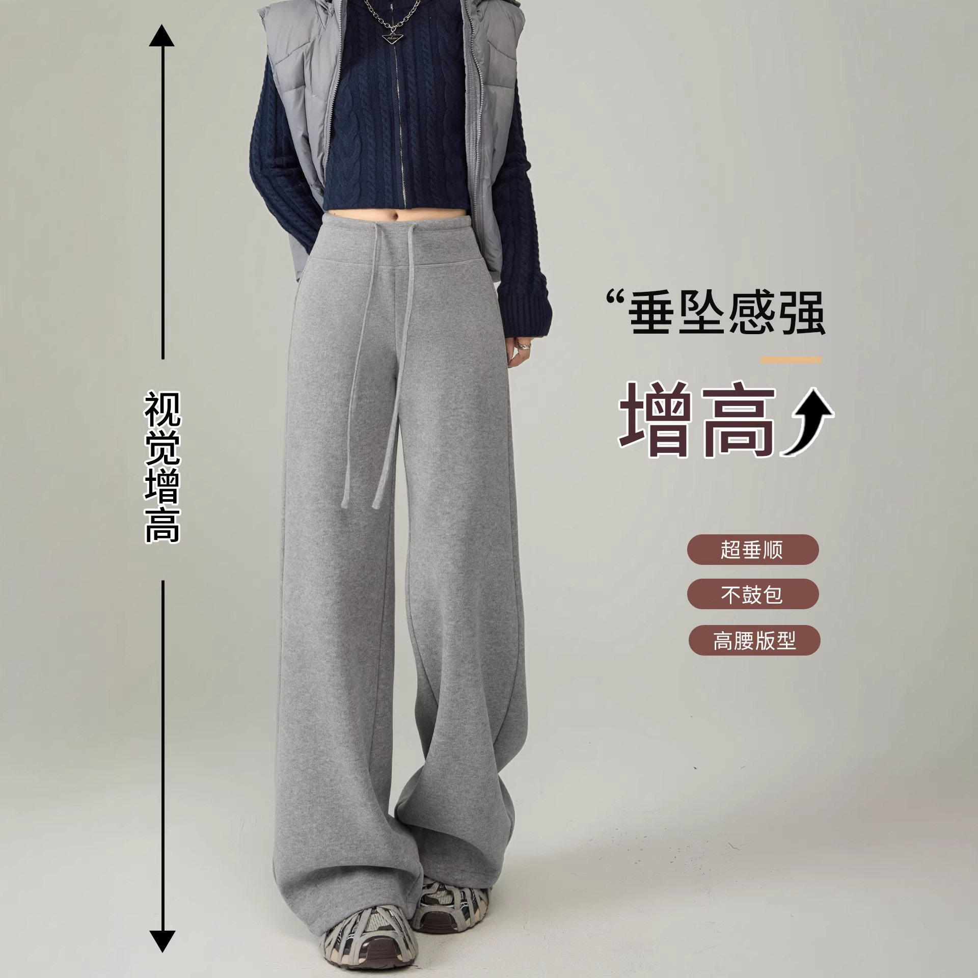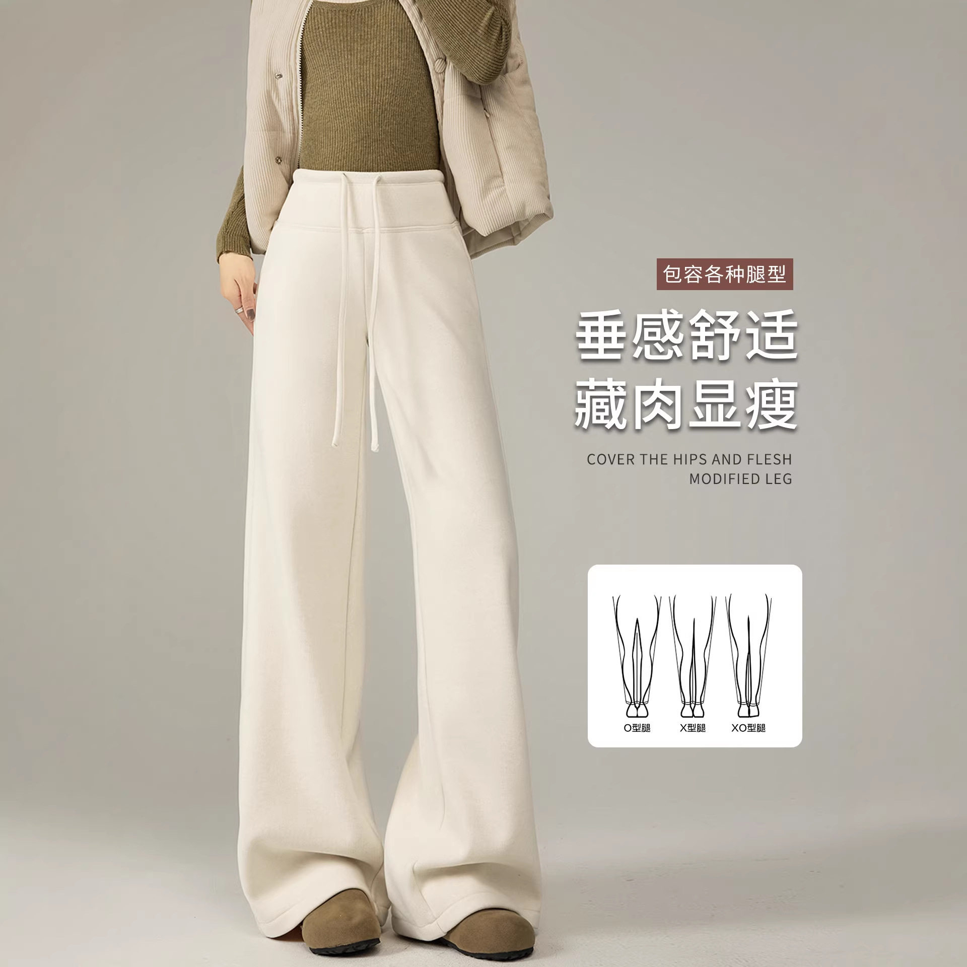 咖色加绒阔腿裤女秋冬休闲微喇棕色毛呢美拉德卫裤加厚糯米裤子