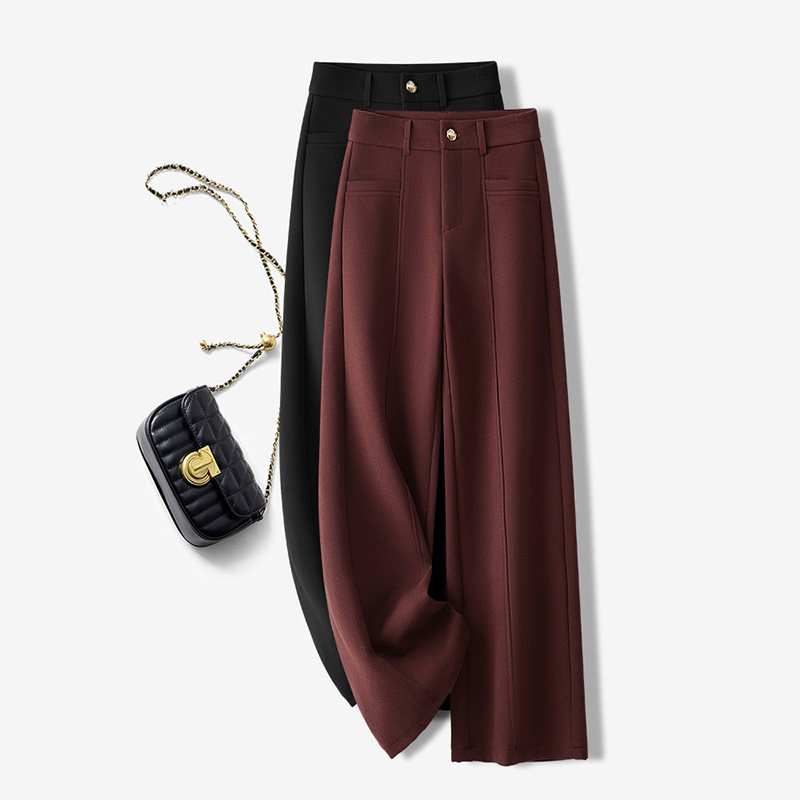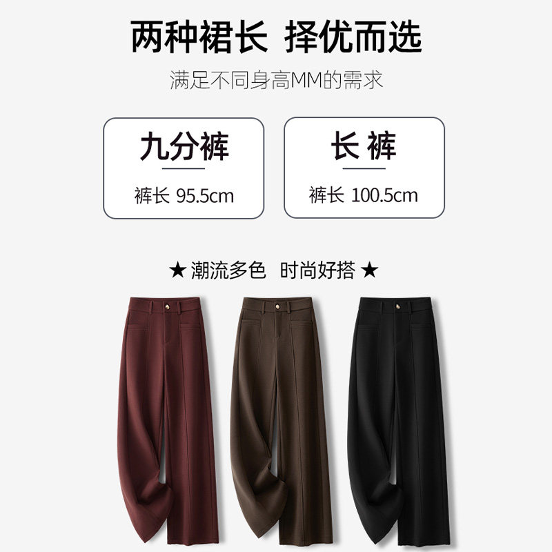首页> 女装> 啄木鸟高端安哥拉红阔腿裤女秋冬宽松西装加绒直筒裤垂坠感拖地子