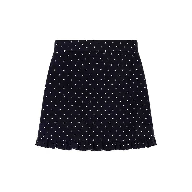 黑色波点毛呢花边半裙(隐形拉链,安全裤)