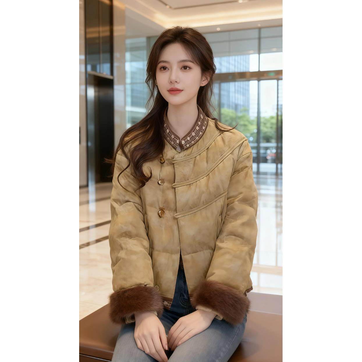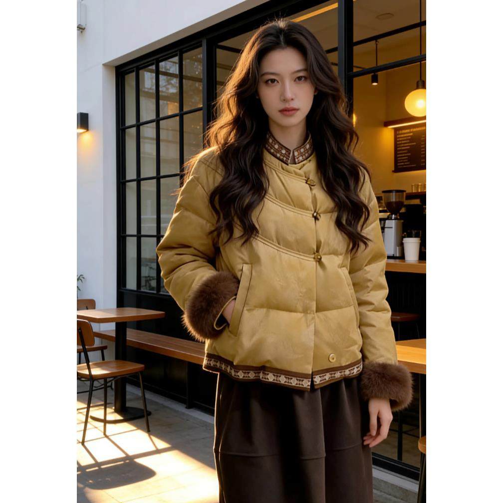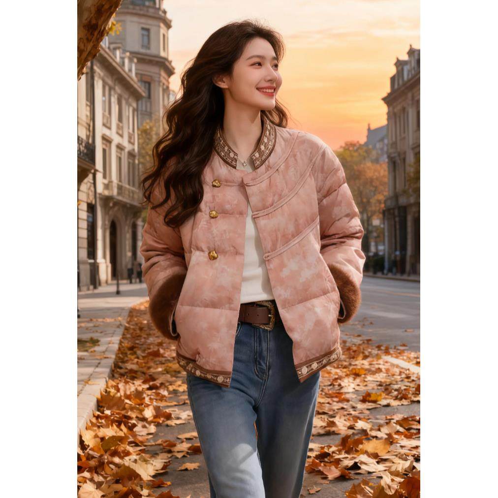 首页> 女装> 韩版时尚高级感拼色百搭棉服女2025冬季新款小众洋气圆领显瘦外套