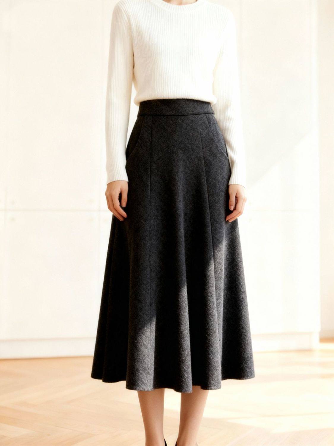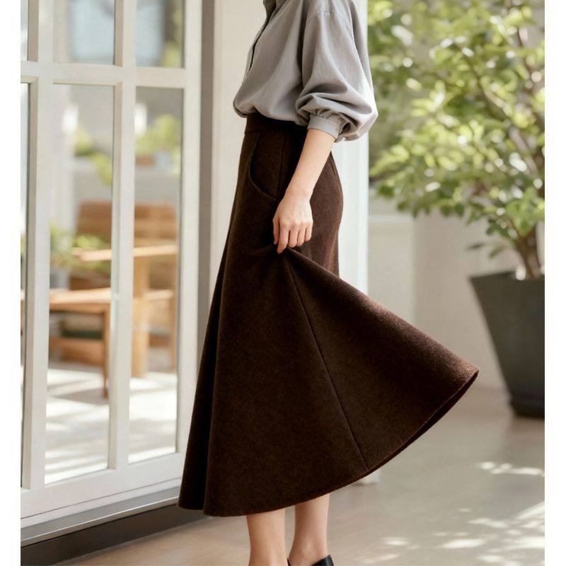 加厚毛呢半身裙秋冬女2025新款高腰显瘦A字大摆长裙垂感气质伞裙