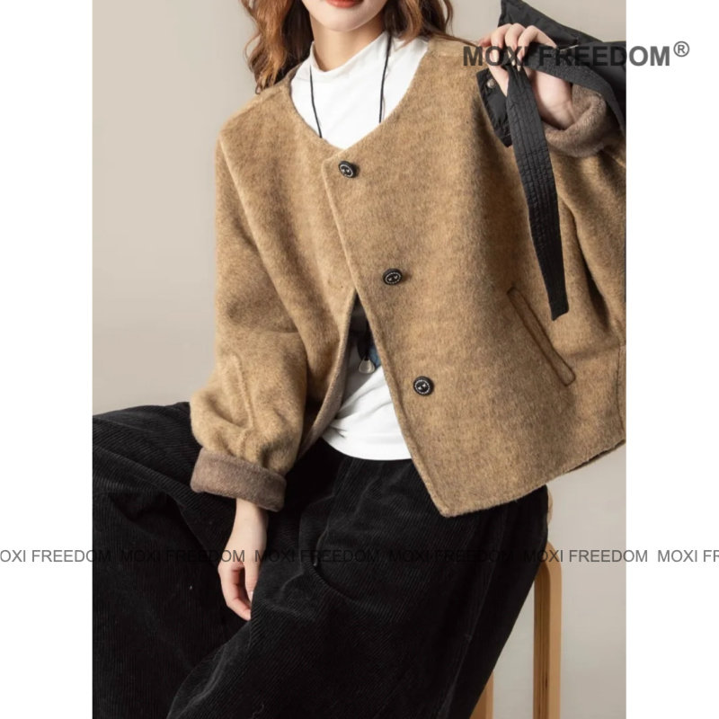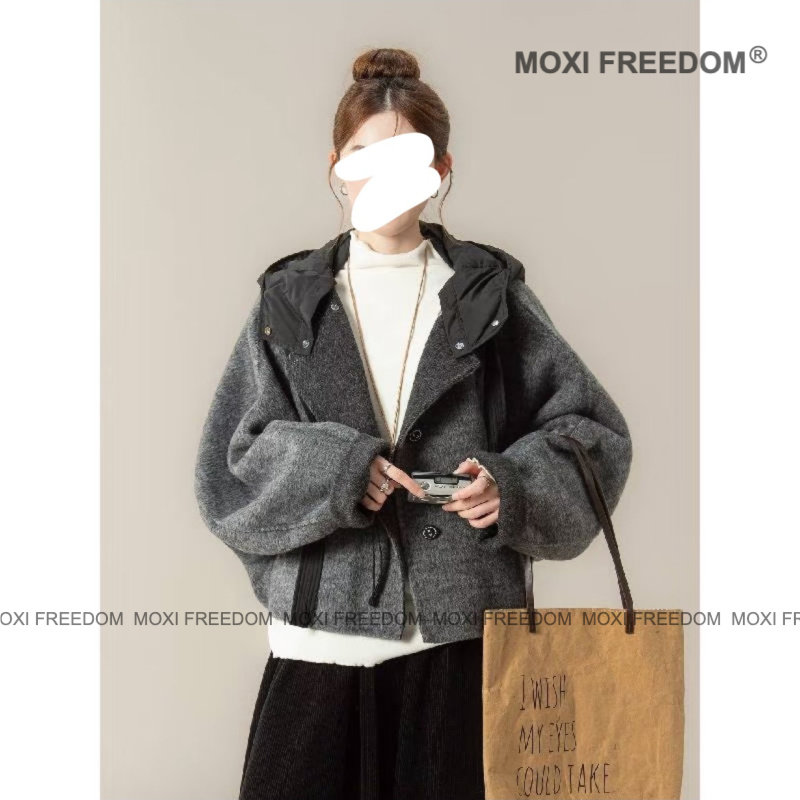 【松弛切片】秋冬新款小个子短款休闲可拆卸帽子双面羊毛大衣外套