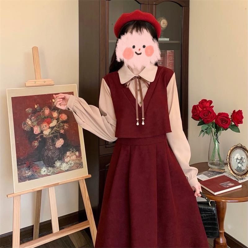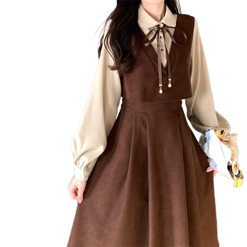【斜纹灯芯绒】连衣裙女冬新款法式高级感气质减龄长裙收腰假两件