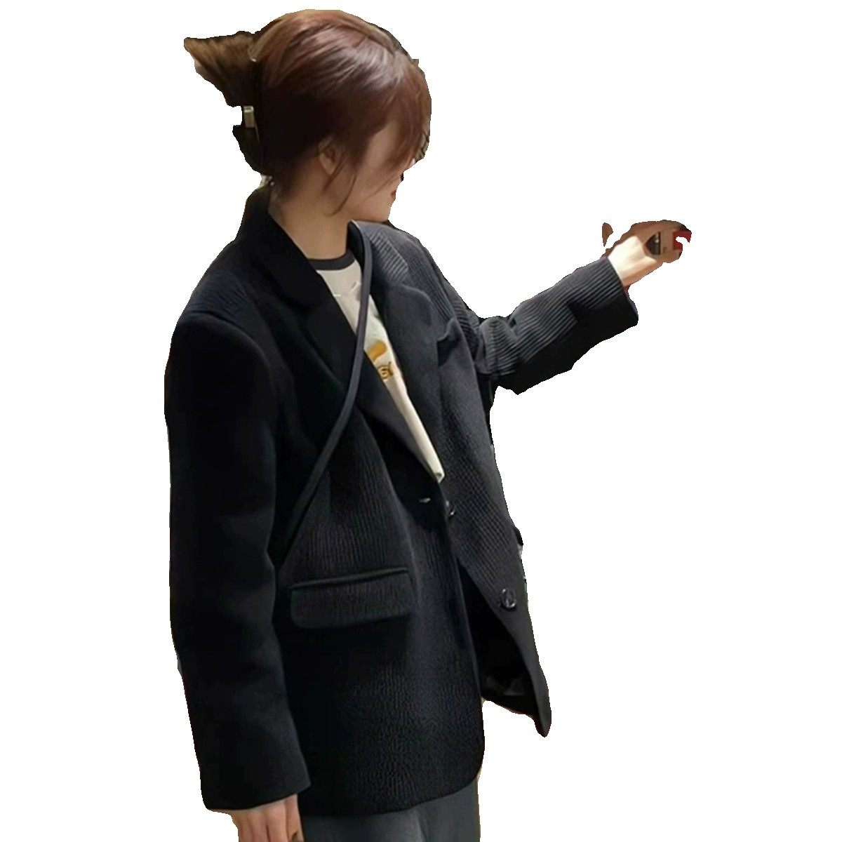 ovsize小个子高级设计感灯芯绒黑色小西装覆古港风春秋休闲 外套
