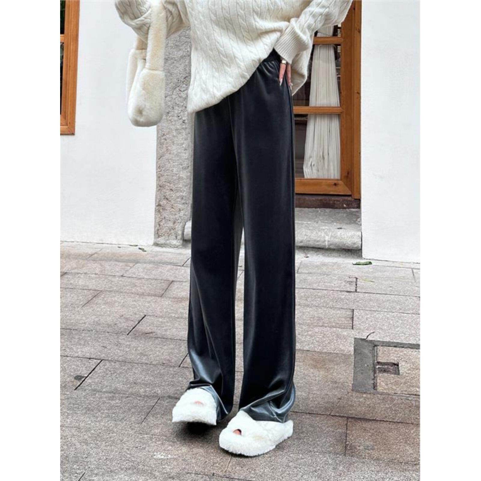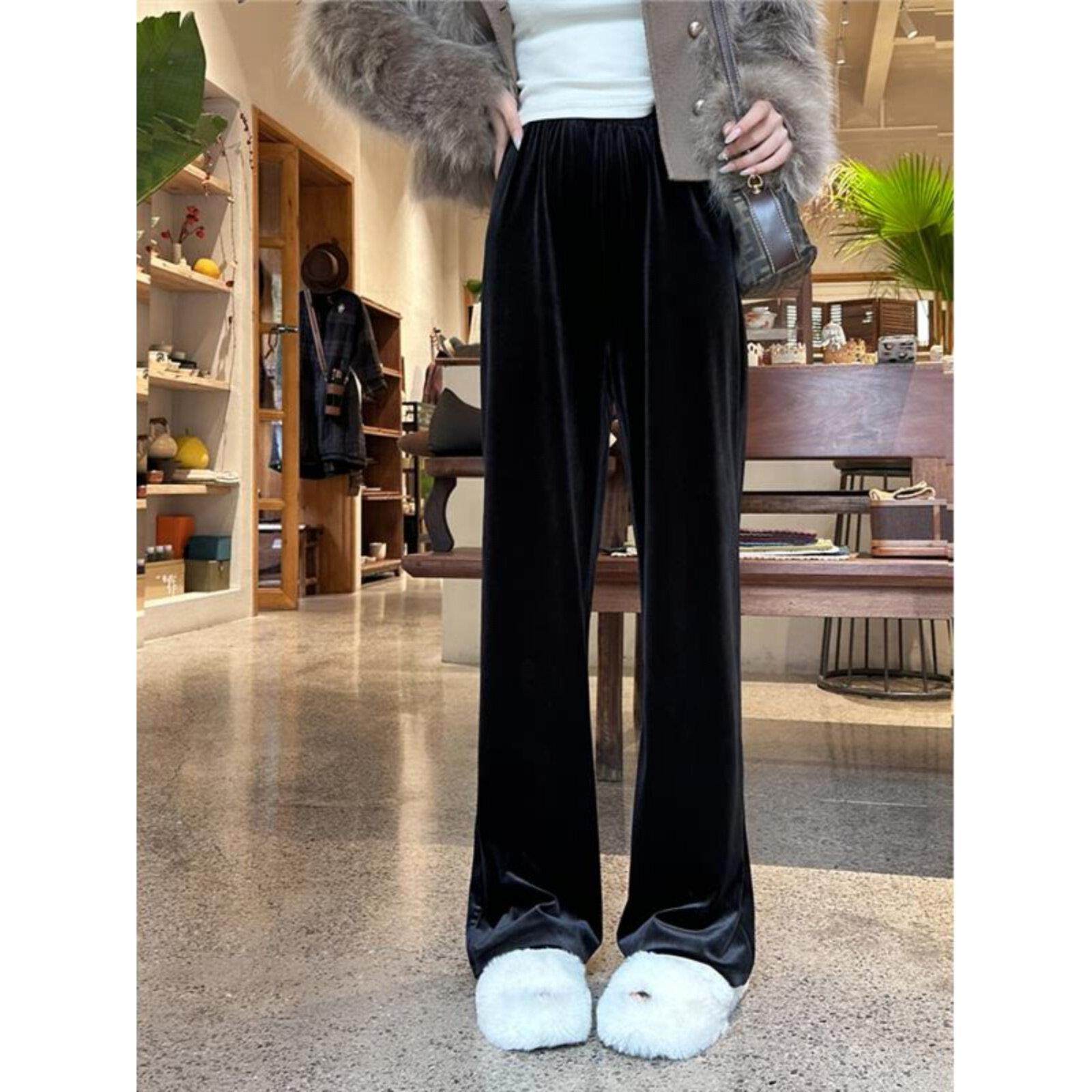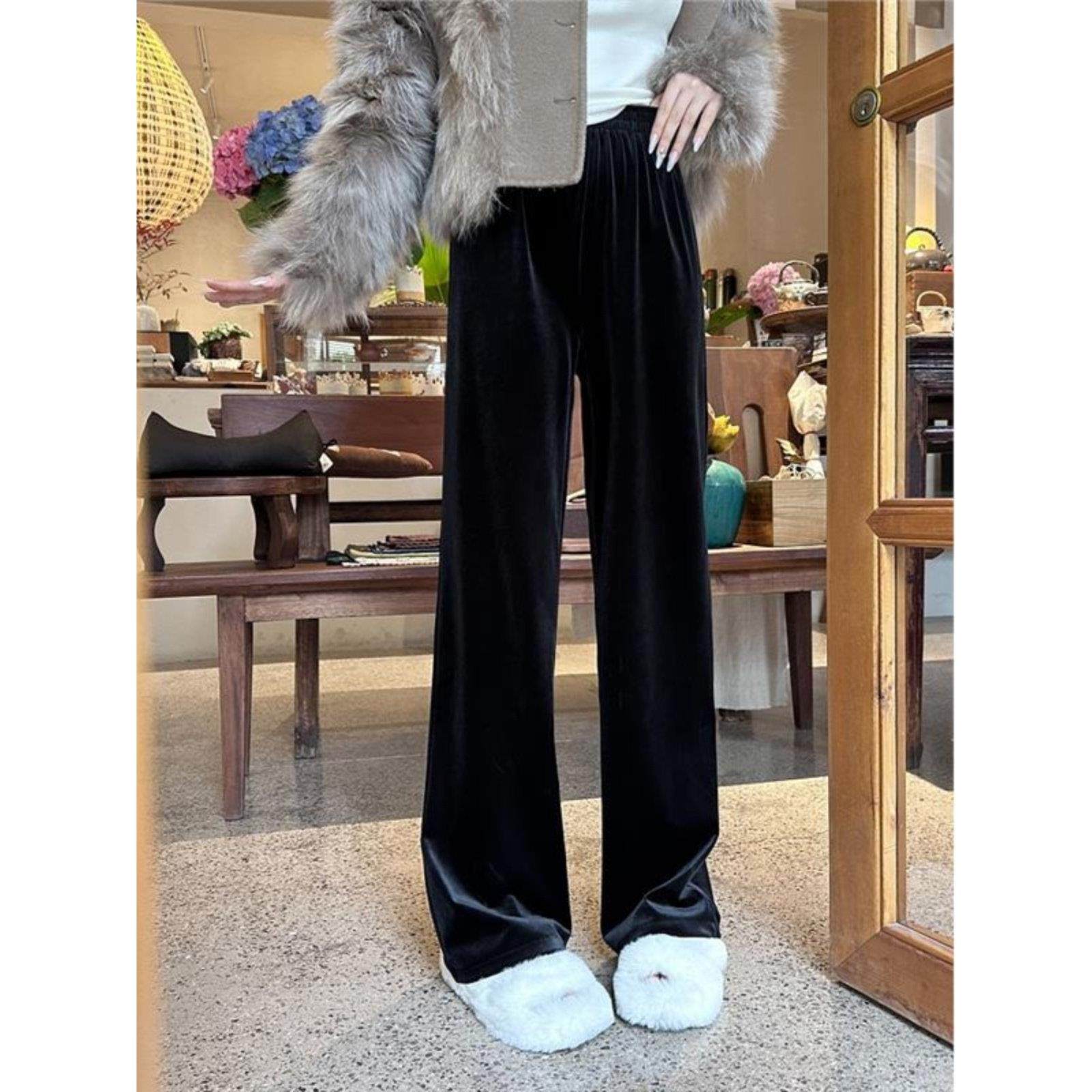 金丝绒窄版阔腿春秋冬女梨形微胖妹妹加绒高腰宽松显瘦遮肉拖地裤