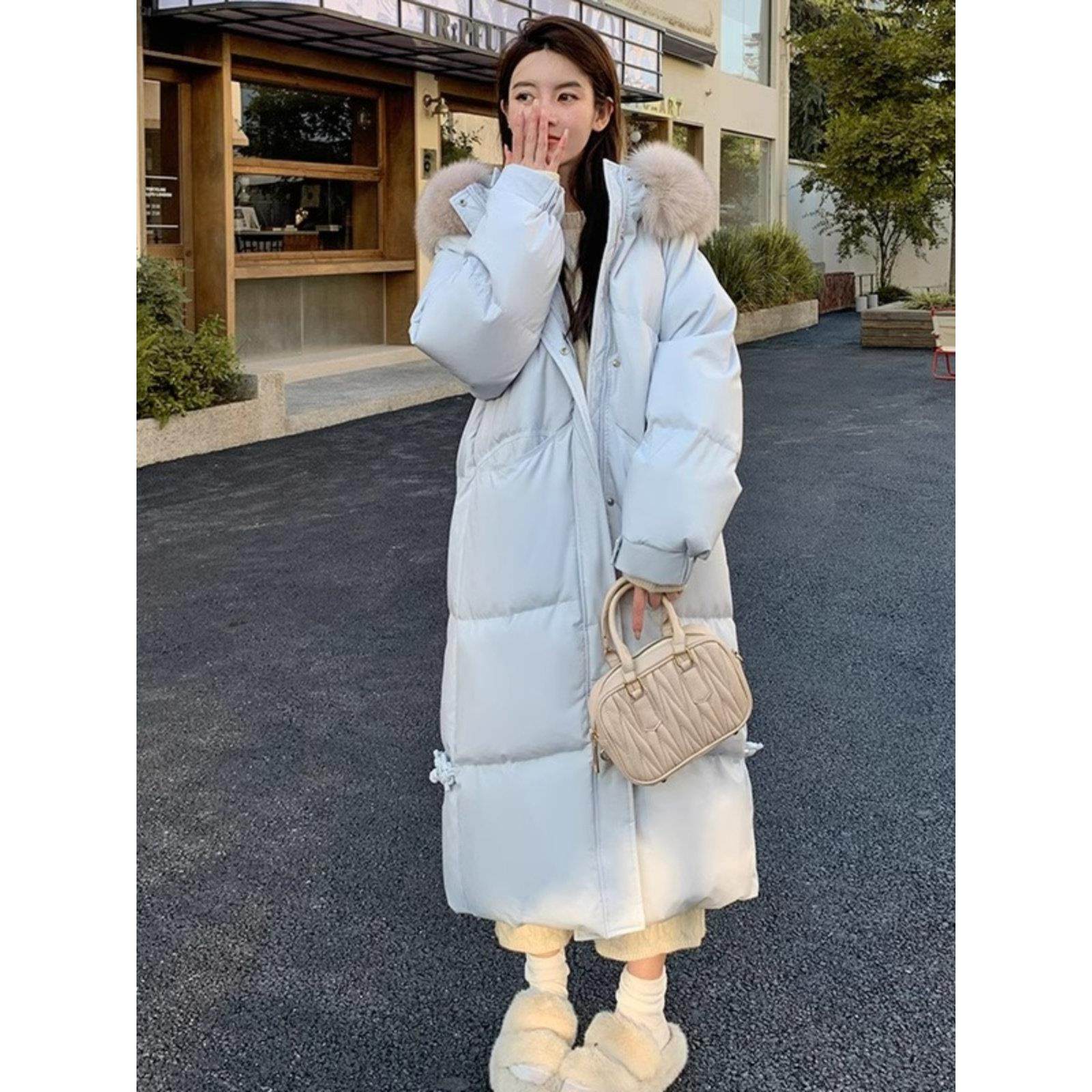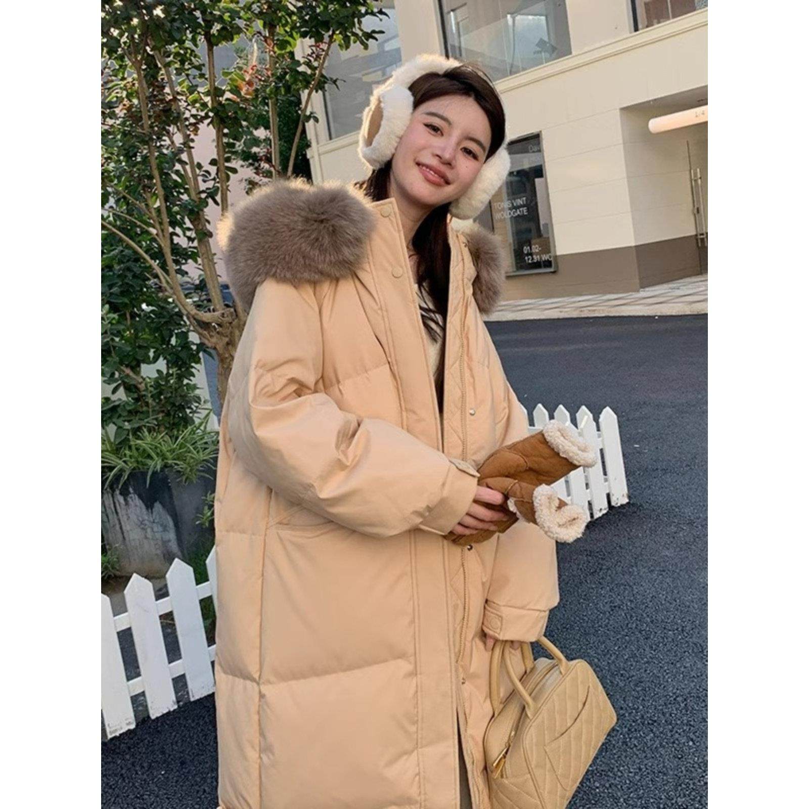 首页> 女装> LILY MOST狐狸毛领中长款羽绒服2025冬新款女连帽加厚白鸭绒大码