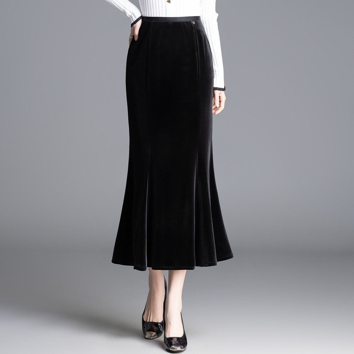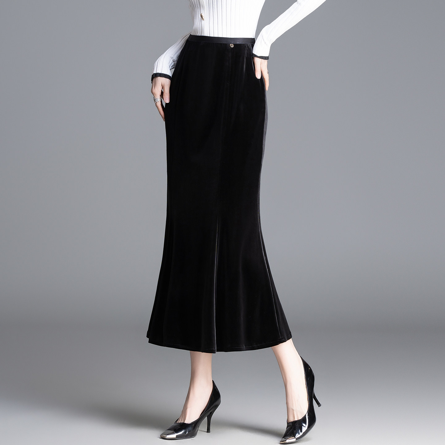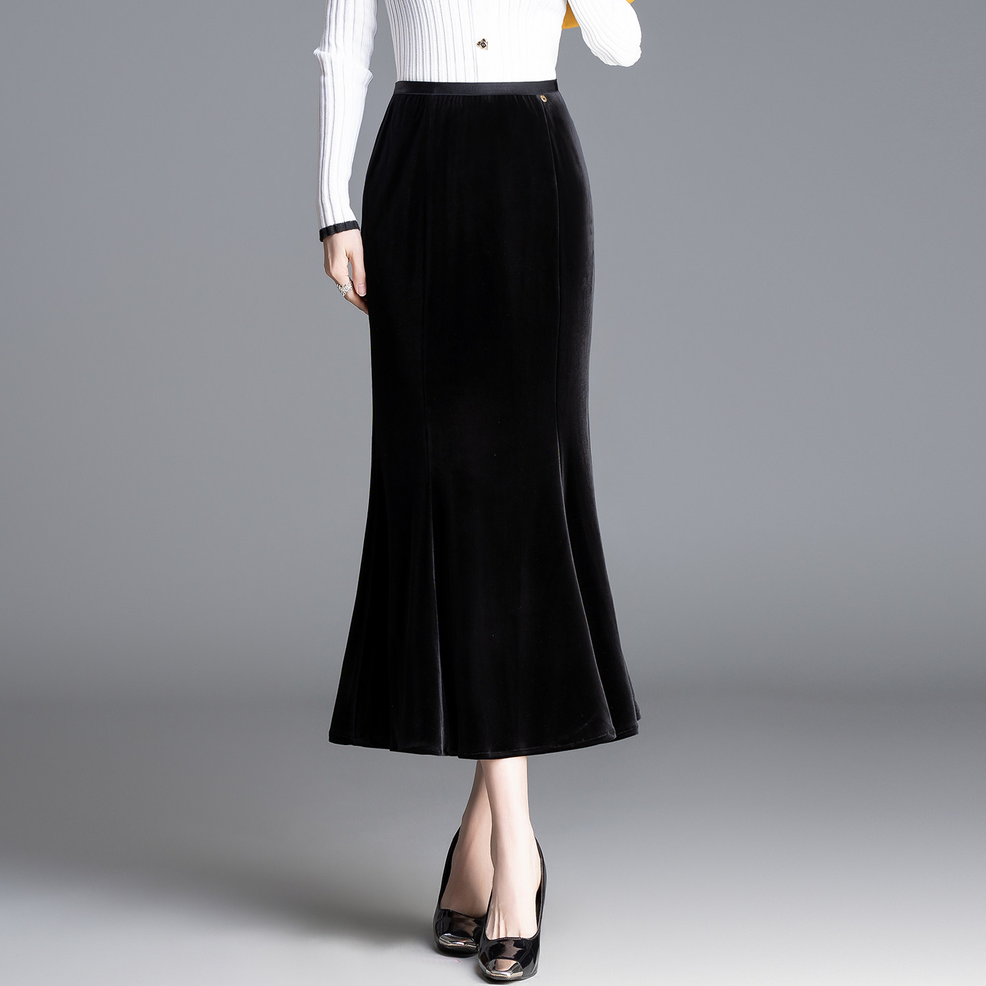 气质修身丝绒包臀鱼尾裙女春季2026新款高腰通勤半身裙垂感中长裙