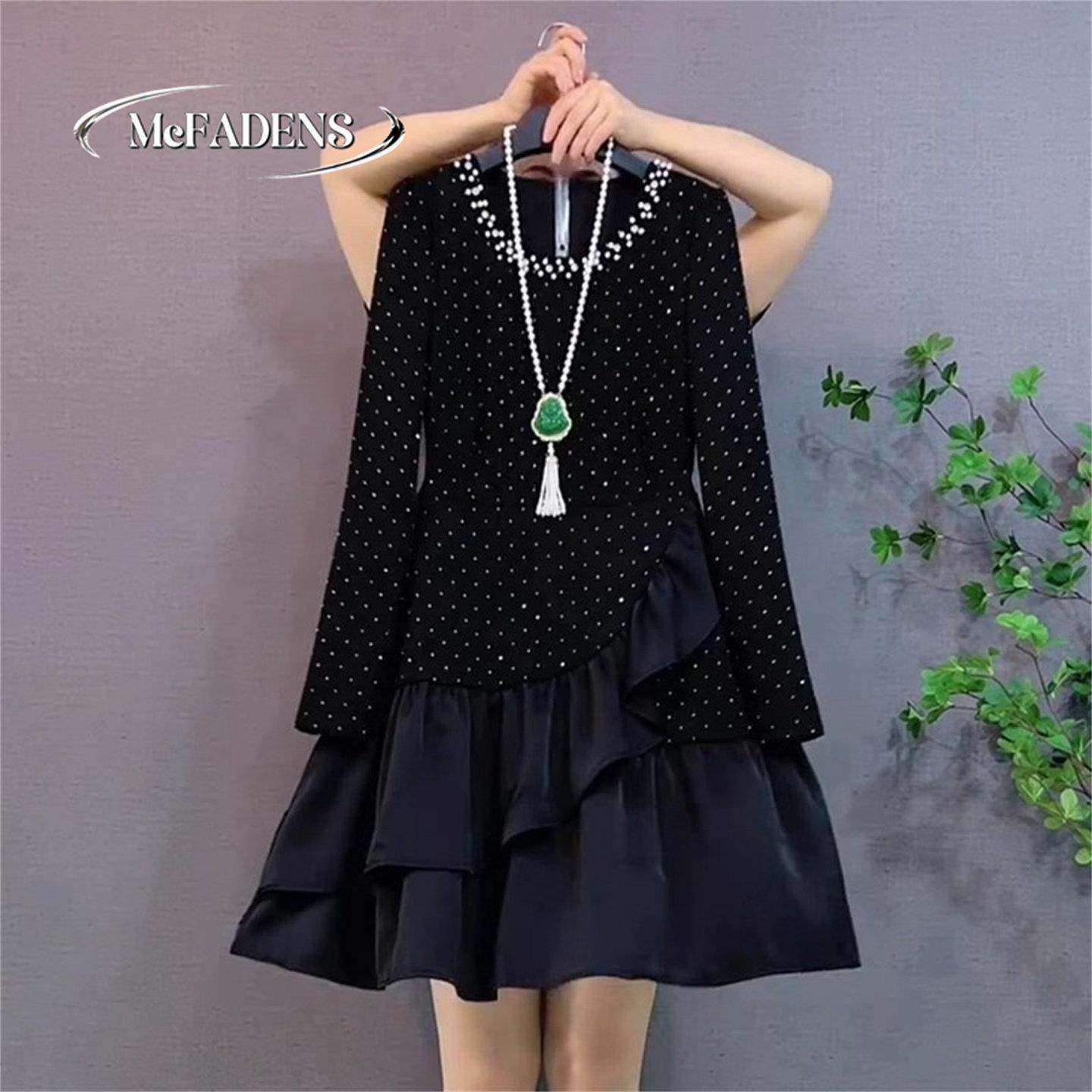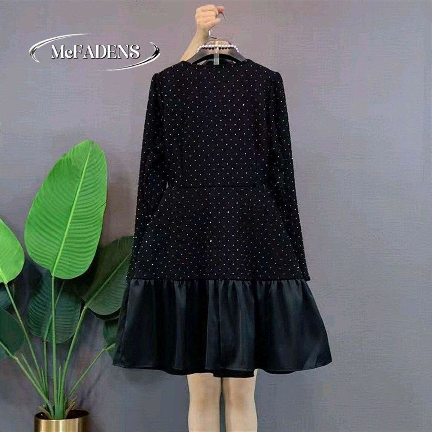 首页> 女装> 香港胖妹妹冬季新款法式大码女装时尚拼接赫本风烫钻钉珠连衣裙潮
