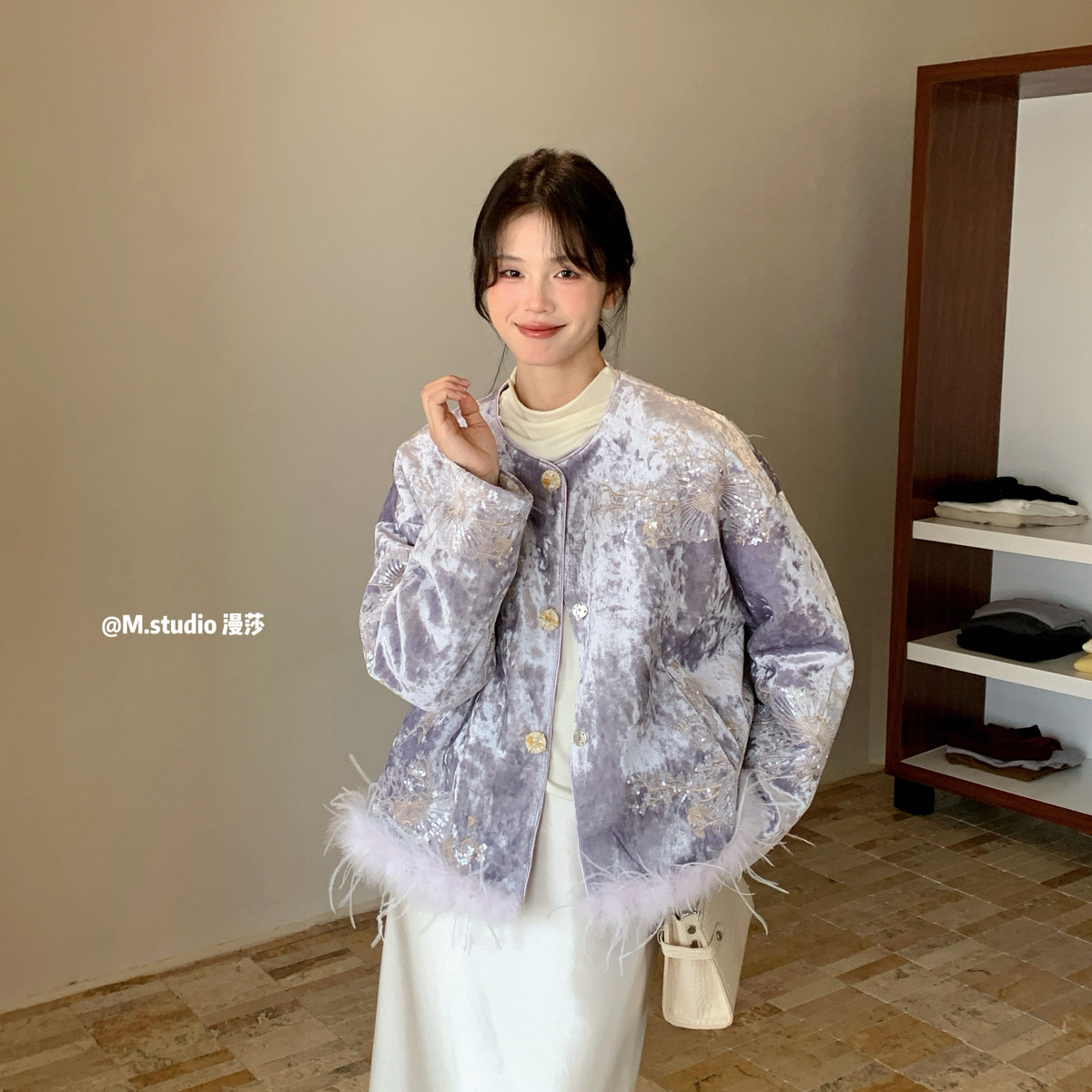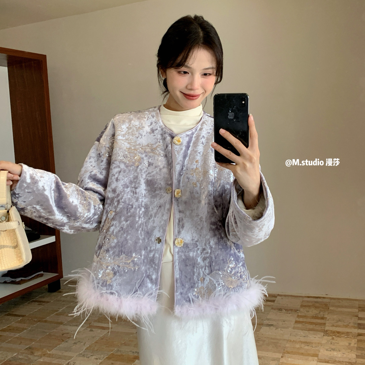 春节战袍凝香雪新中式国风精致刺绣丝绒保暖羽绒服外套