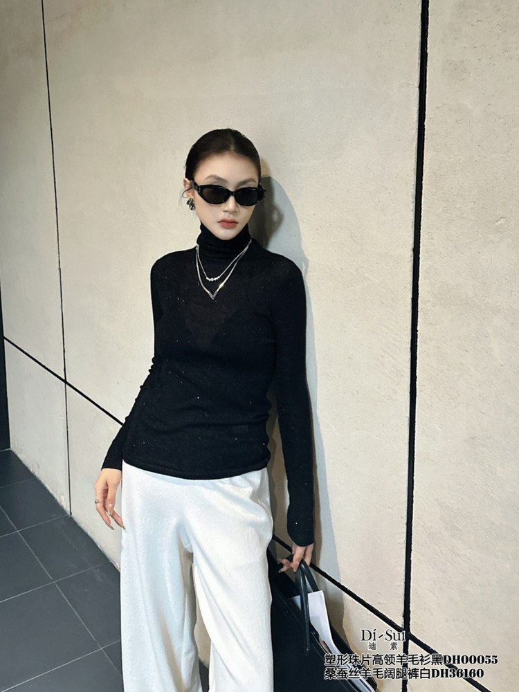 欧货正品时尚百搭显瘦设计师款高领羊毛上衣打底衫 特价不退不换