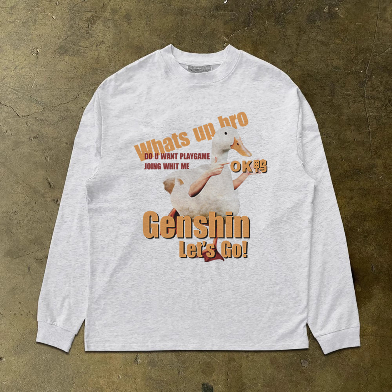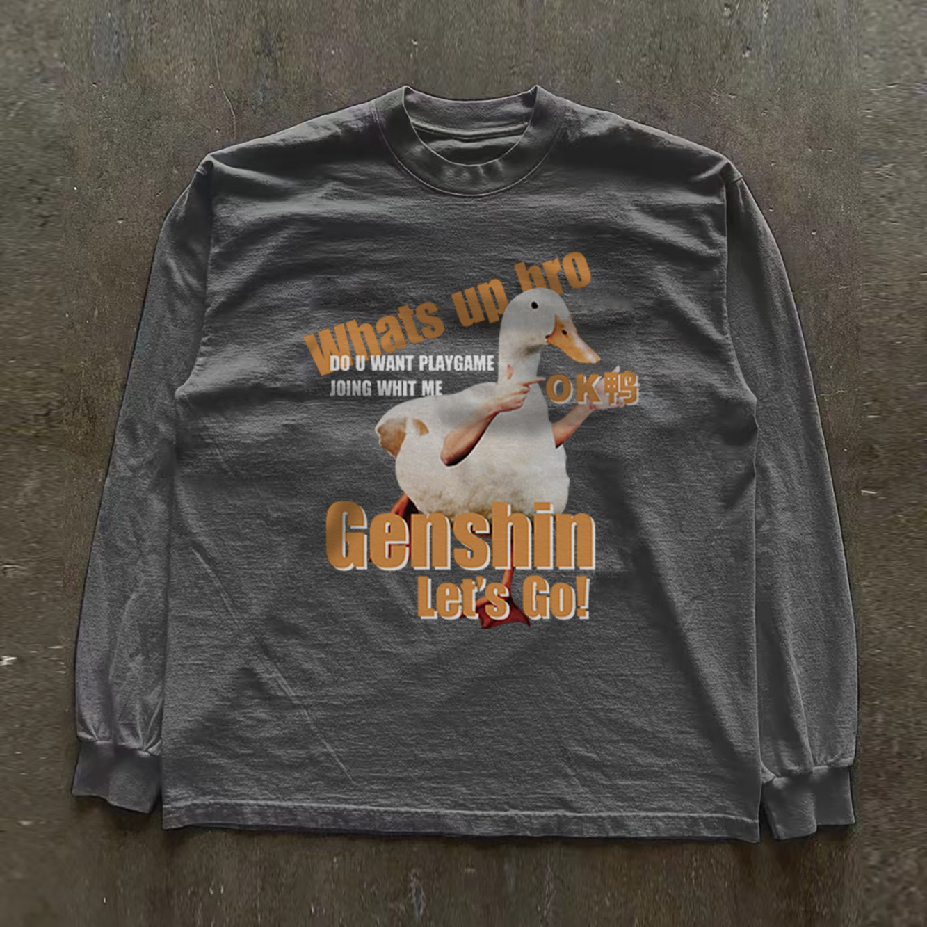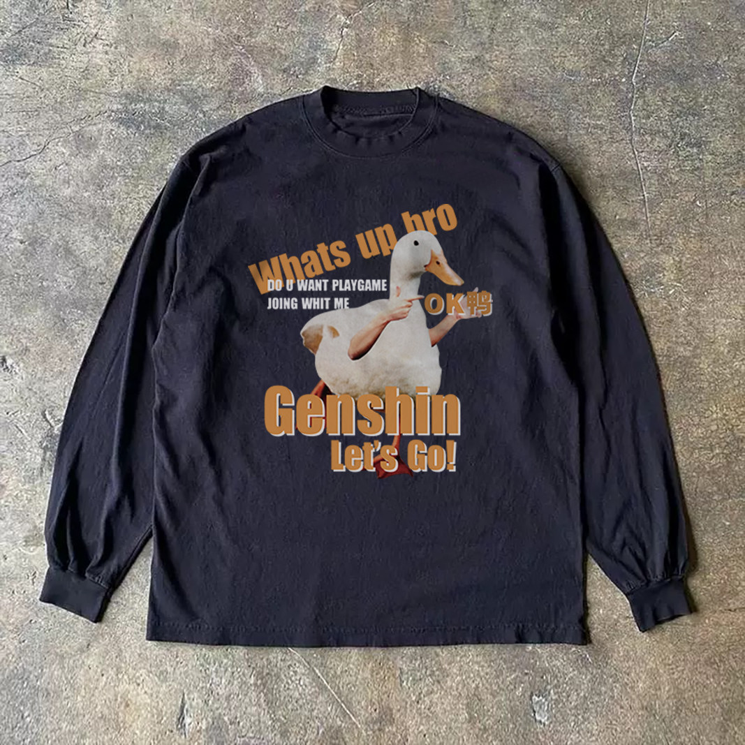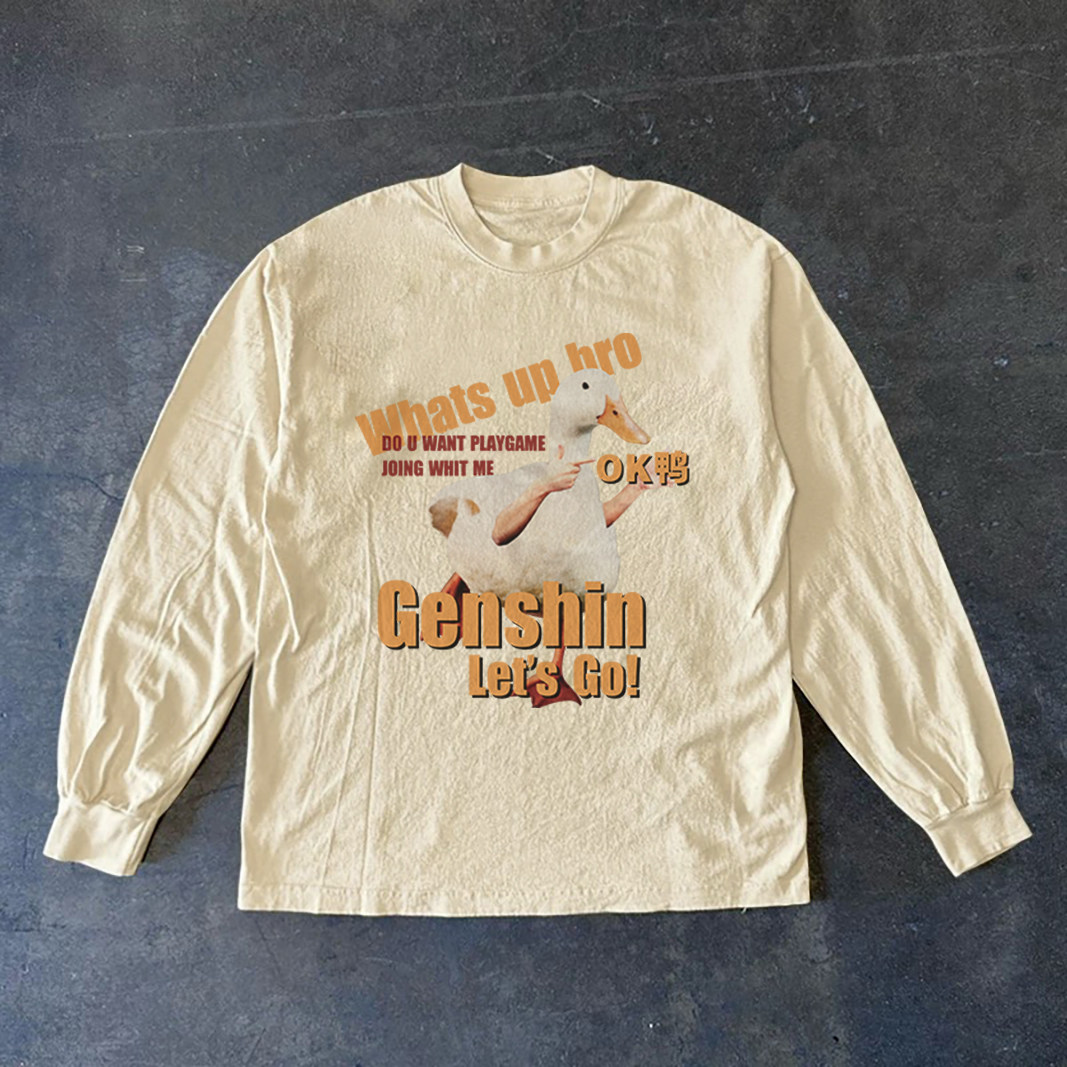300克重磅!小众韩版休闲慵懒风长袖创意圆领印花T恤显瘦上衣vibe