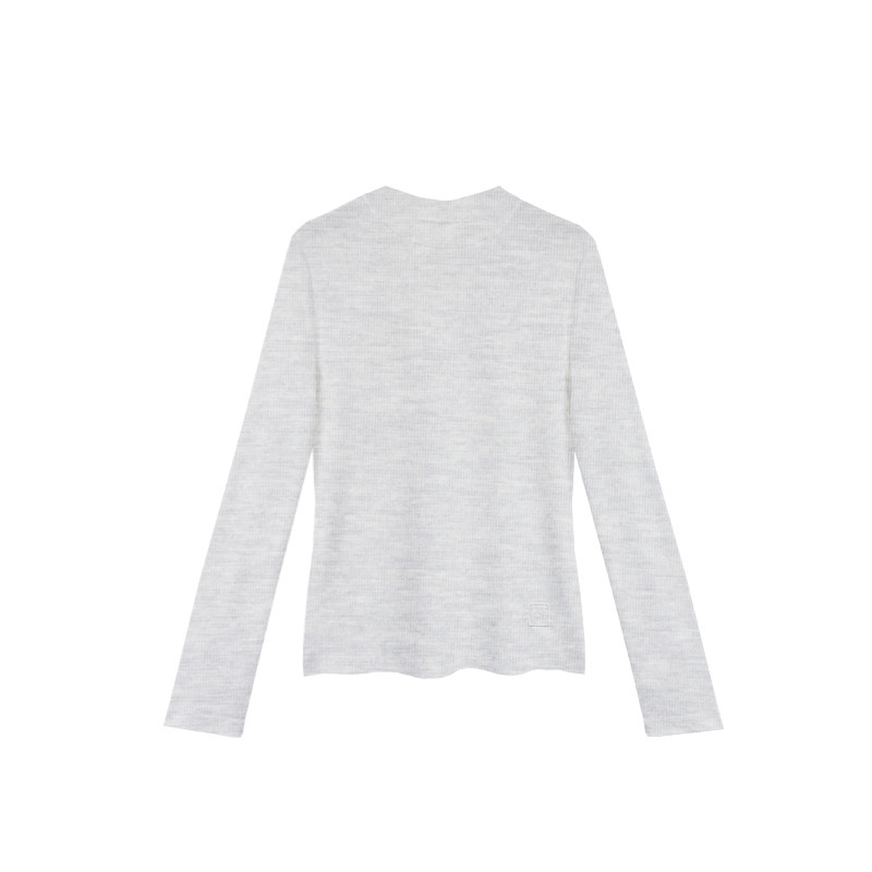 【橙庐】828001原创多巴胺莱赛尔绵羊毛长袖针织T恤 春款女打底衫