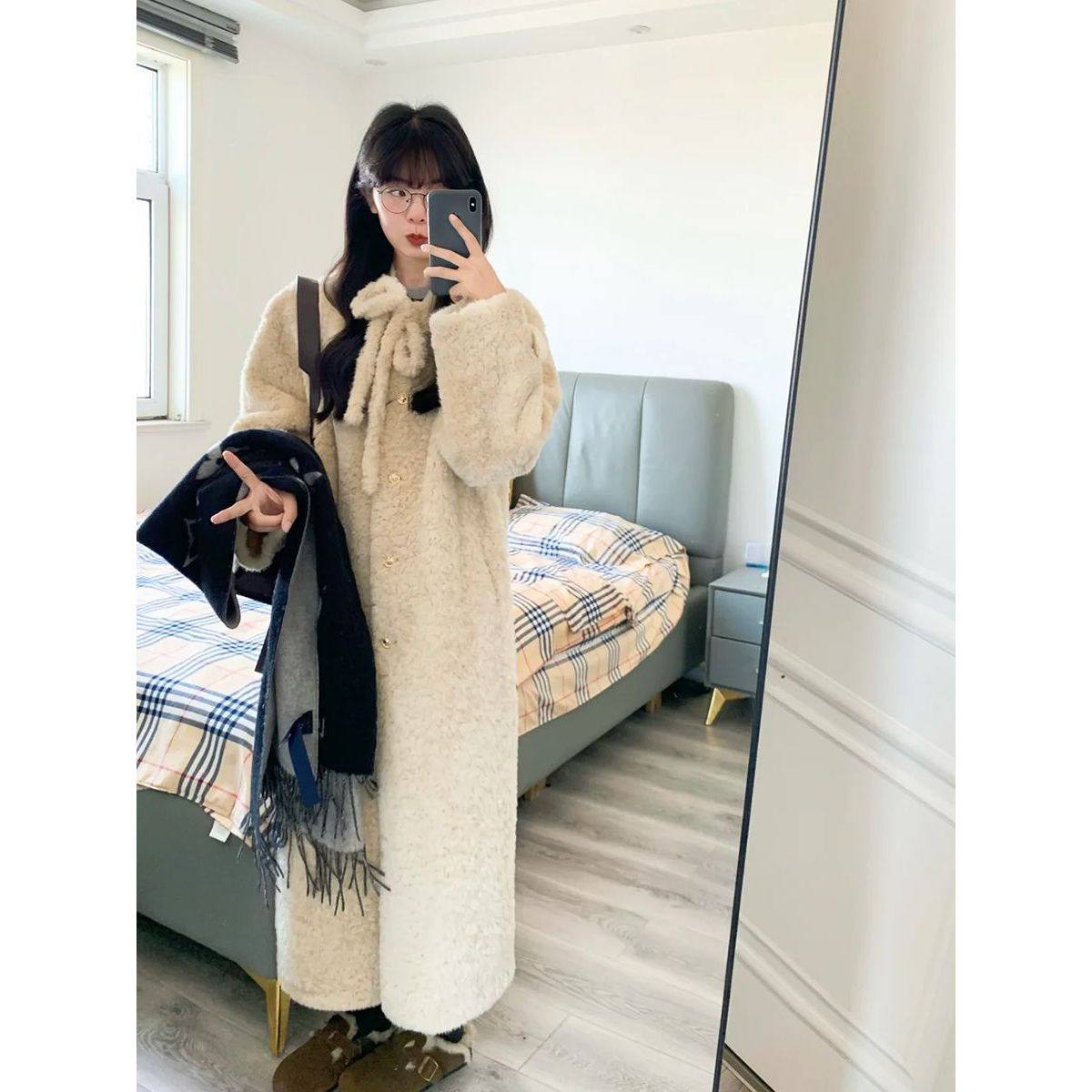 软乎乎可爱毛绒系带羊羔毛外套冬季新款小众慵懒风宽松保暖大衣女