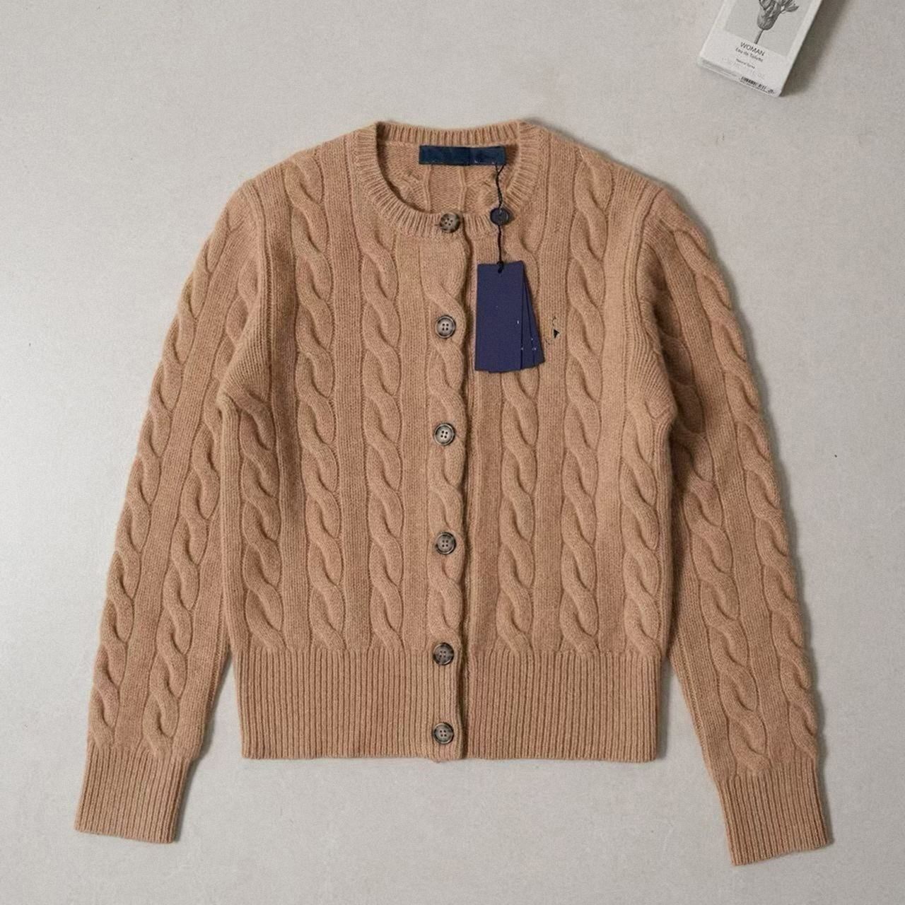 过验!80%羊毛20%羊绒拉夫针织老钱风开衫麻绞花小马圆领毛衣外套