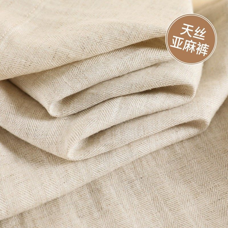 高端抗皱天丝亚麻阔腿裤女2025春夏新款棉麻垂感高腰宽松直筒冰丝