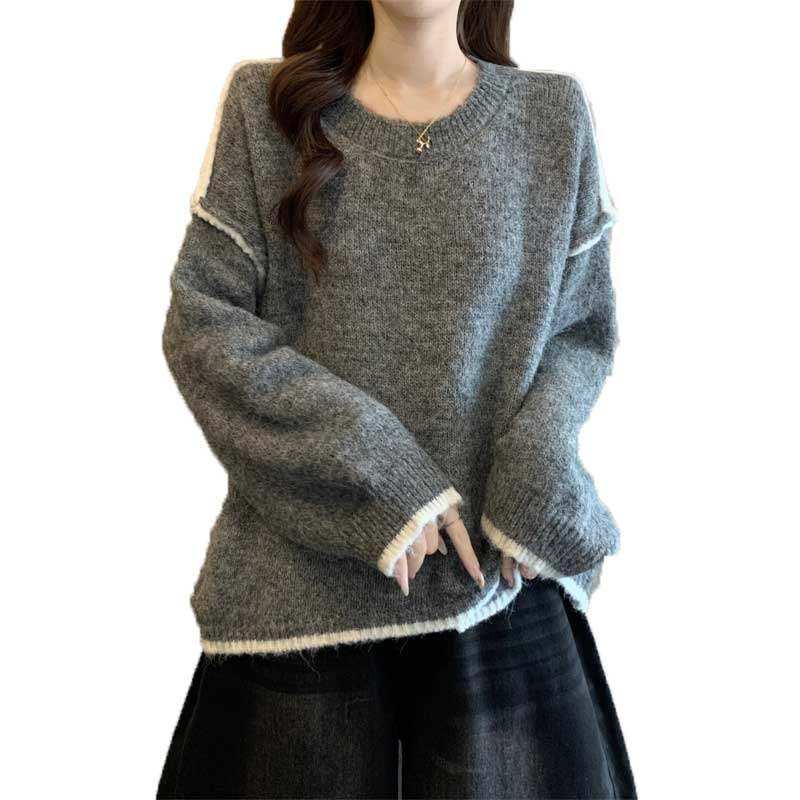 宽松慵懒灰色毛衣女装秋冬2025新款大码胖mm高级不规则针织衫上衣