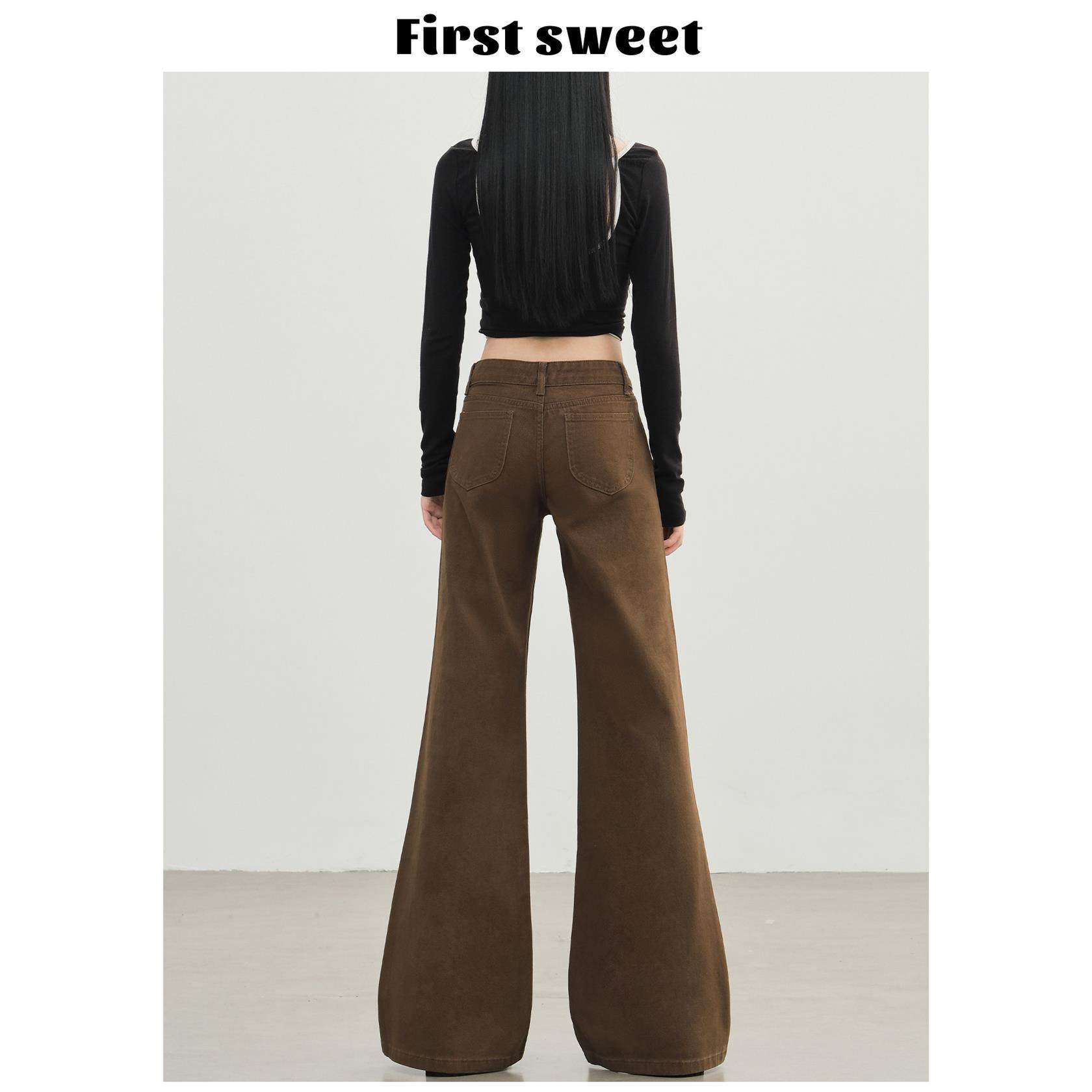 棕咖色微喇牛仔裤女2025年秋冬新款美式低腰宽松显瘦直筒喇叭裤子