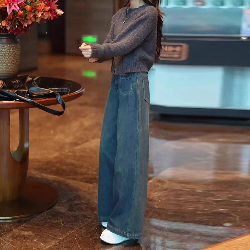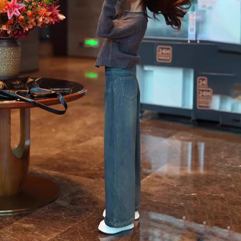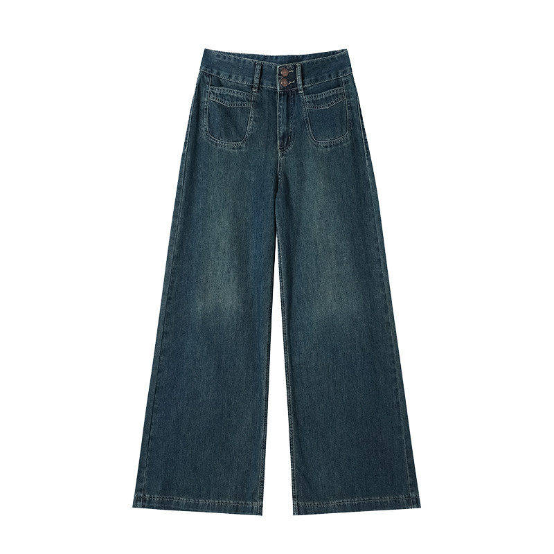 宽松阔腿牛仔裤女2025春夏新款高腰显瘦小个子显高美式覆古直筒裤
