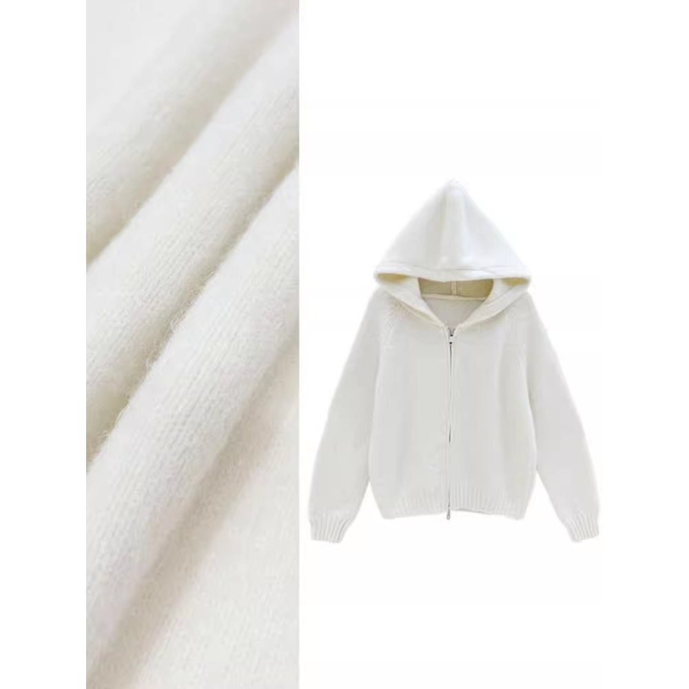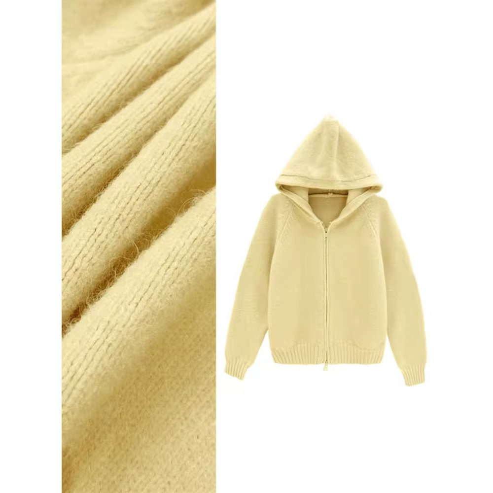 韩系双拉链设计感纯色连帽针织开衫女简约休闲外贸新款针织开衫