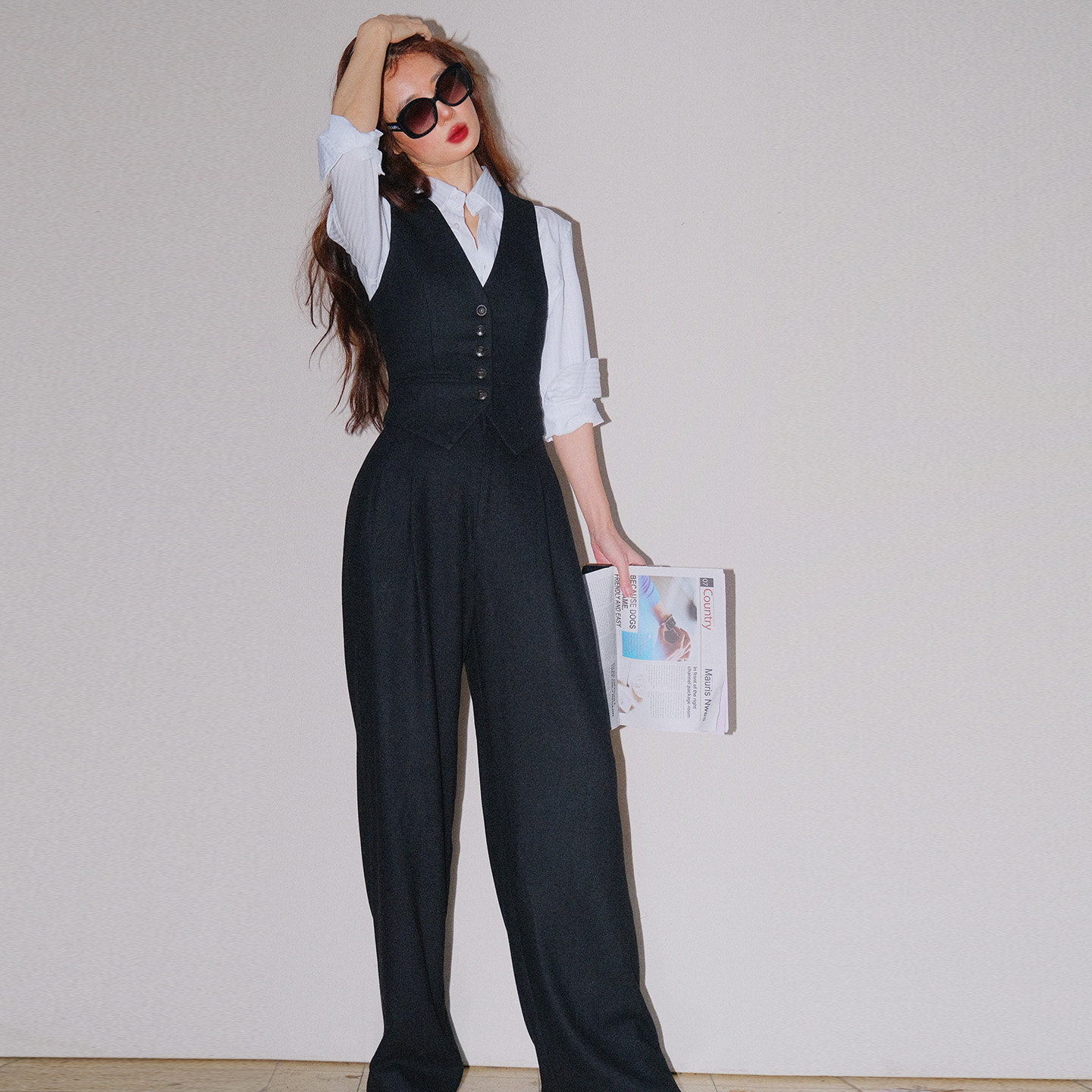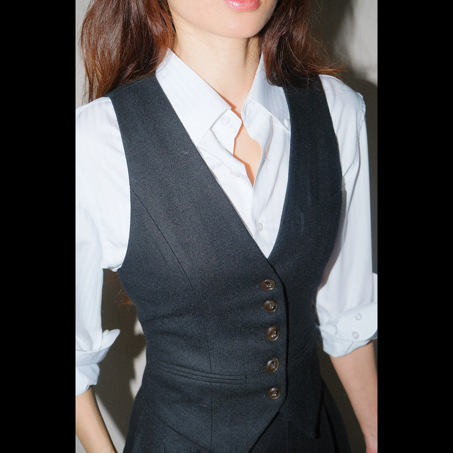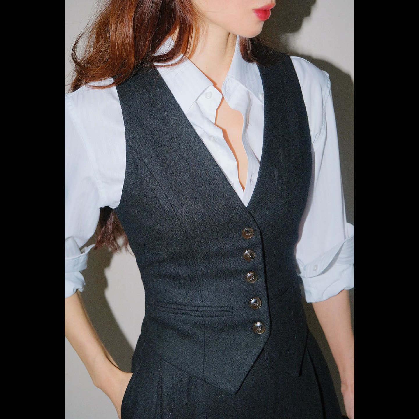 首页> 女装> LISAYU黑色毛呢羊毛双排扣马甲粉蓝衬衣两件套装呢子马甲衬衣套装