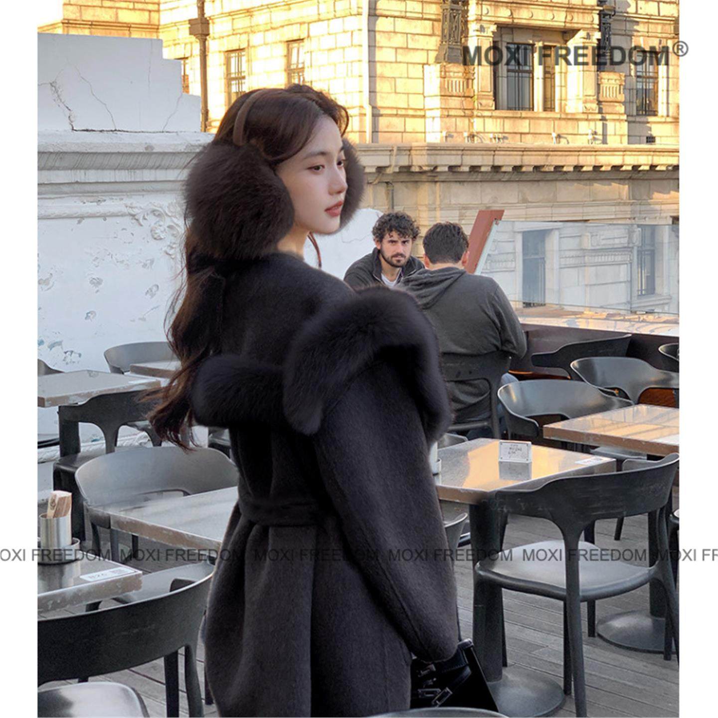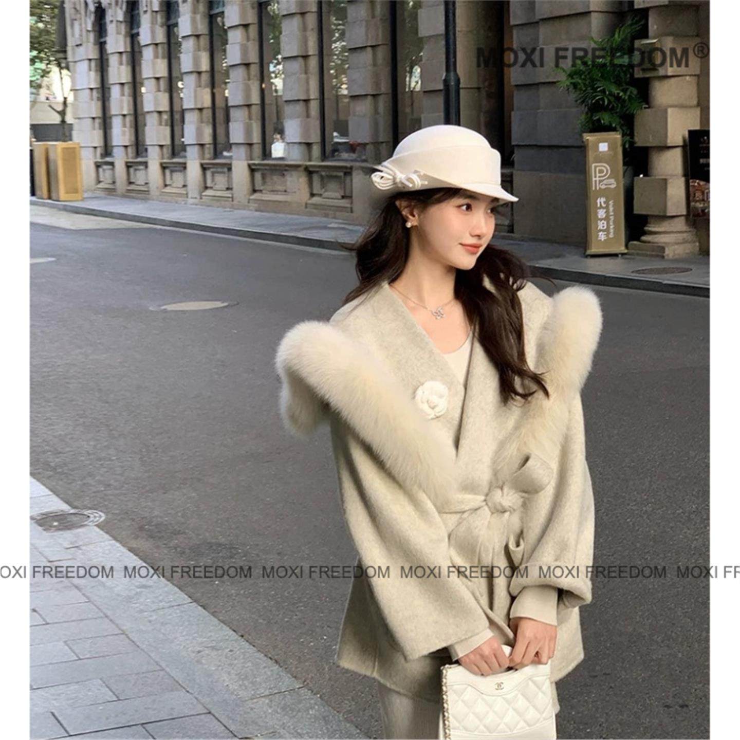 【千金裘】高品质狐狸毛千金贵气新款气质宽松双面羊毛大衣外套女