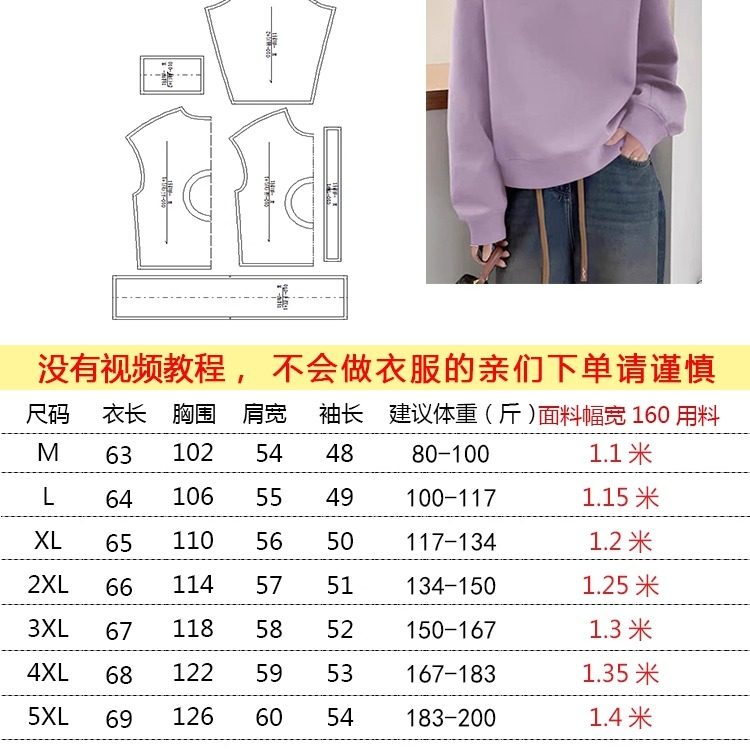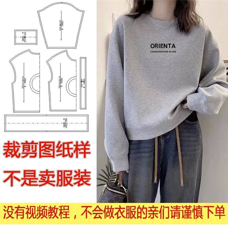 服装裁剪图纸样秋冬新款圆领卫衣洋气胖MM宽松长袖上衣裁剪纸样