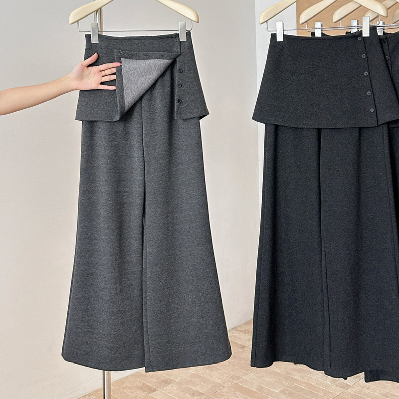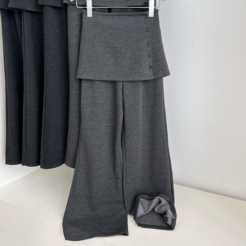 首页> 女装> 小个子150灰色加绒羊绒微喇裤女冬季加厚两件套休闲裤宽松喇叭裤