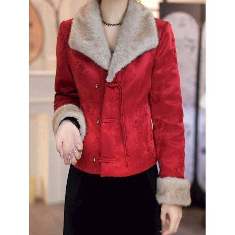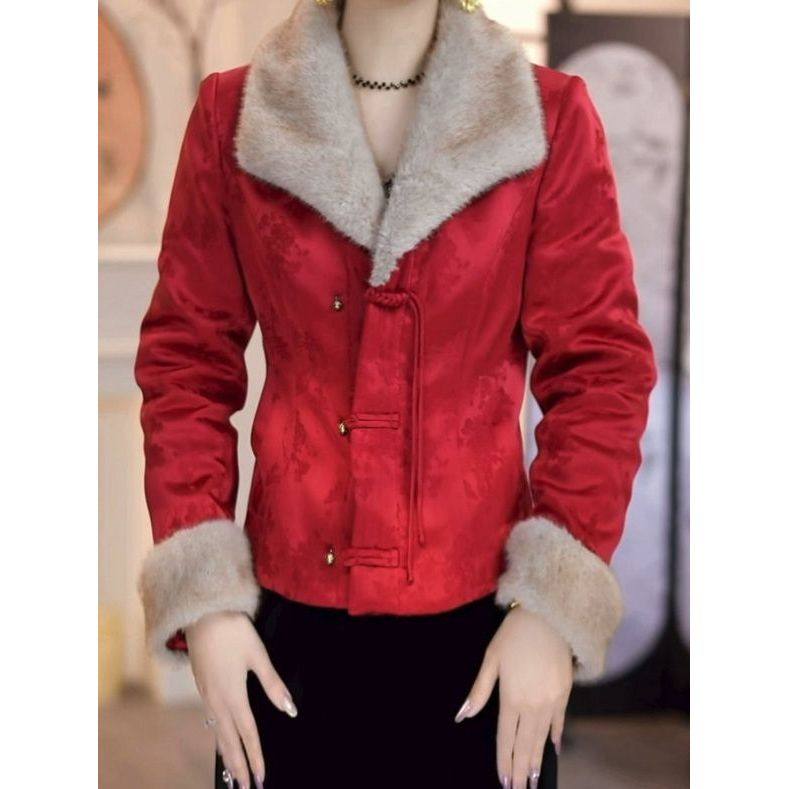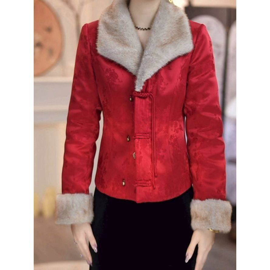 宋锦提花缎夹棉加厚棉衣外套2025冬季新款气质显瘦新中式保暖外套