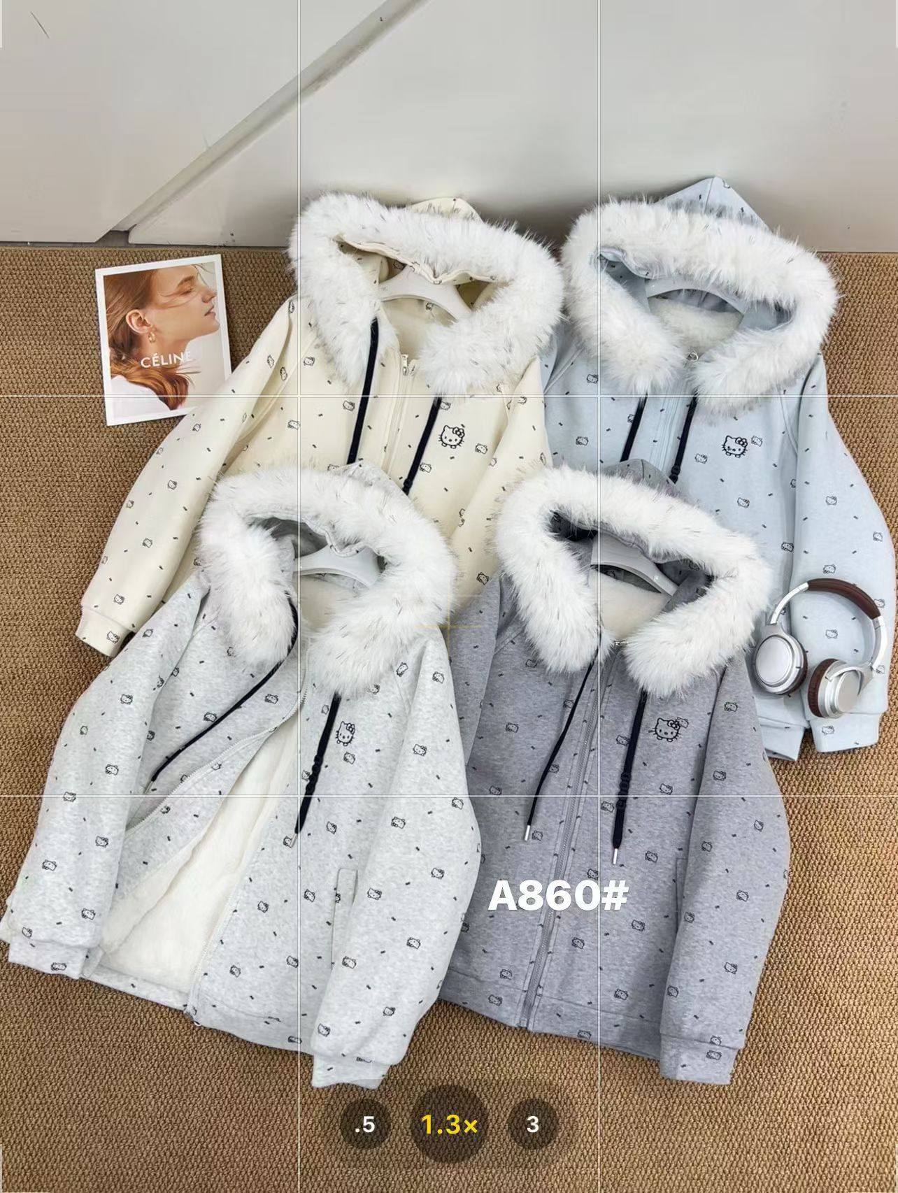 连帽外套女2025冬季新款韩版休闲宽松卡通印花百搭加厚保暖上衣潮